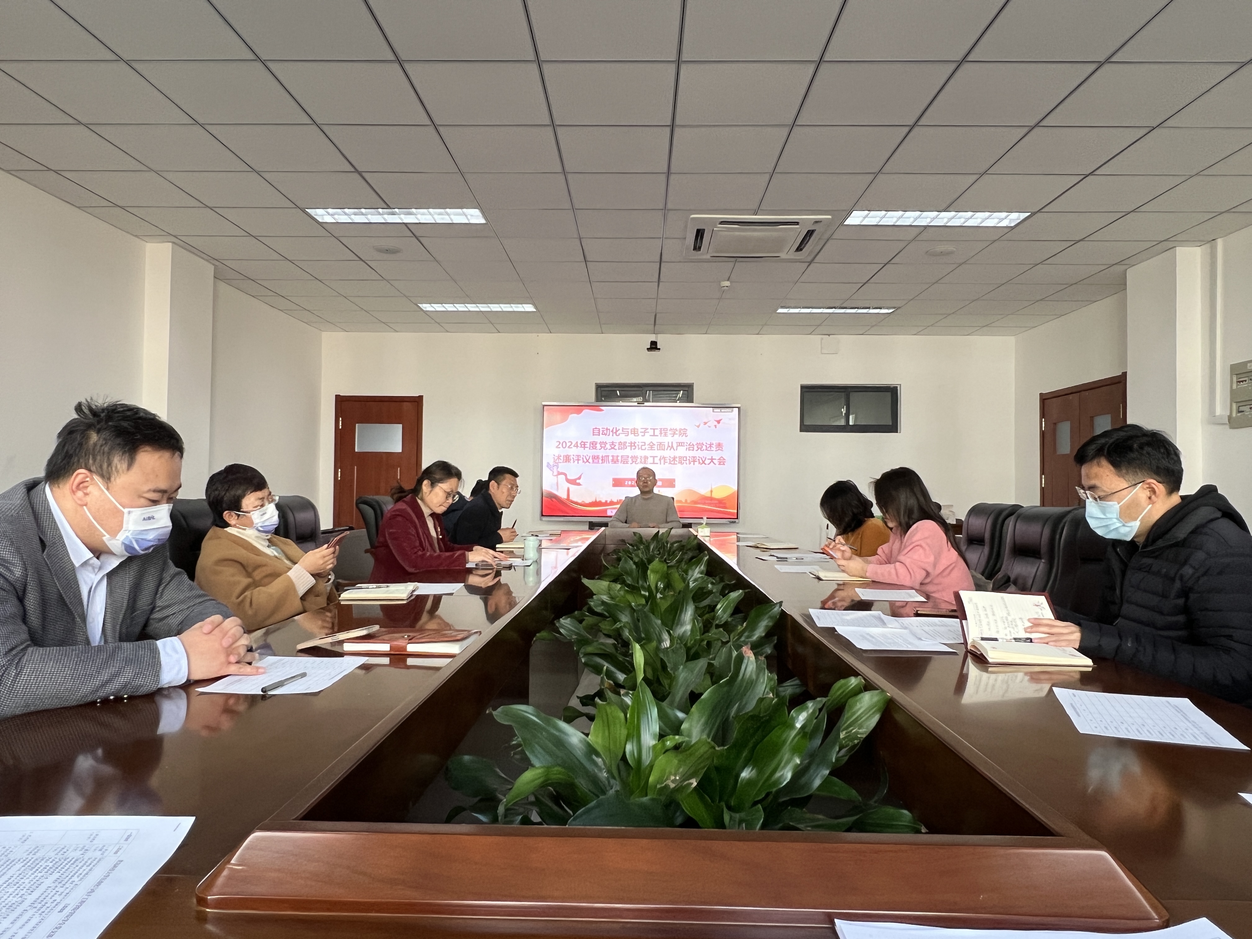 党委在学院楼408会议室召开2024年度党支部书记全面从严治党述责述廉评议暨抓基层党建工作述职述评大会,学院党委委员、各党支部书记参加会议。