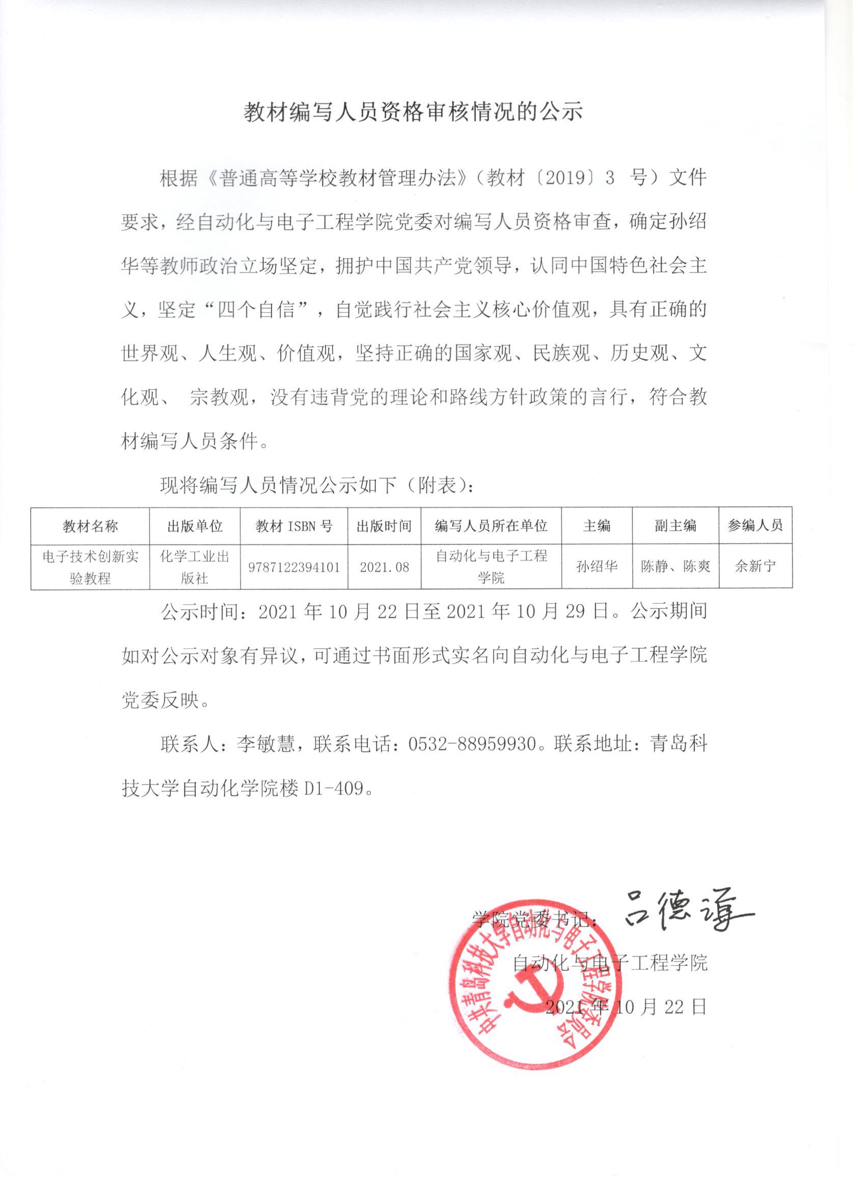 教材编写人员资格审核情况的公示