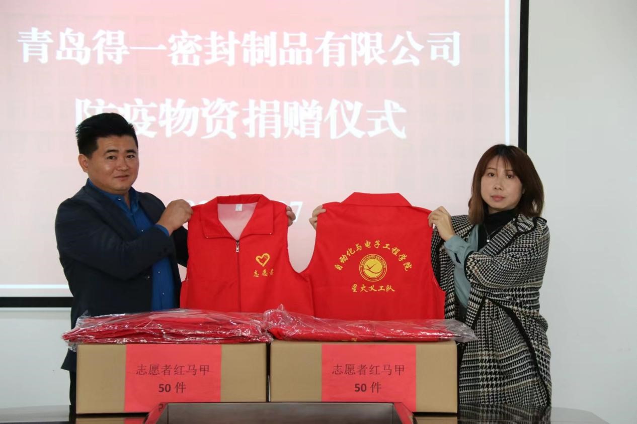 落其实者思其树,饮其流者怀其源。10月27日下午,青岛得一密封制品有限公司防疫物资捐赠仪式在学院楼408举行。公司负责人、测控02级校友韩兵,学院党委副书记兼副院长马寒及师生代表出席捐赠仪式。