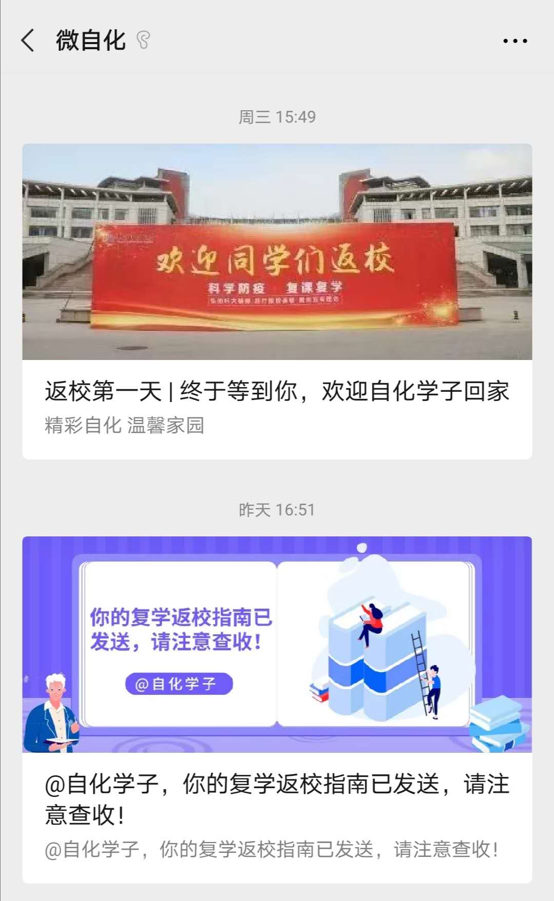 家校合力,校企合作,奏响疫情防控协奏曲。学生返校前,学院严格按照学校要求,通过落实每日健康监测,全面了解学生动态,做好信息摸排,主动联系并引导每一位学生做好准备,妥善组织学生平安健康返校。学院面向全体自化学子,在“微自化”官微推送《复学返校指南》,简洁、清晰地明确了返校每一环节学生需完成的事项,为学生安全、有序回归校园奠定了基础。同时,学院积极面向社会各界朋友和校友募集新冠肺炎疫情防控物资,加大防疫物资储备,先后收到校友和合作企业捐赠的消毒洗手液和防护口罩等,用于学院师生的疫情防控工作。