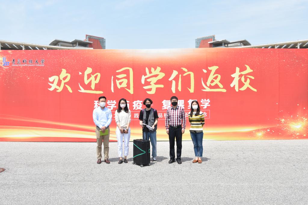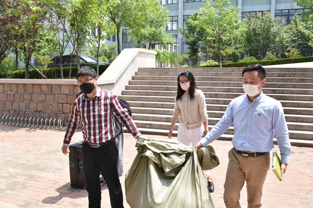 一直等候在校门口的学院领导、老师迎接了返校的同学们,并帮助同学分担行李,询问感受。