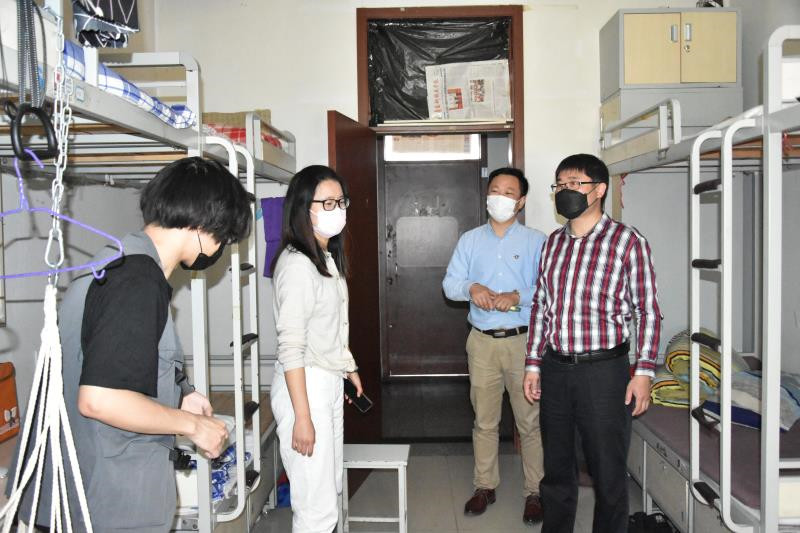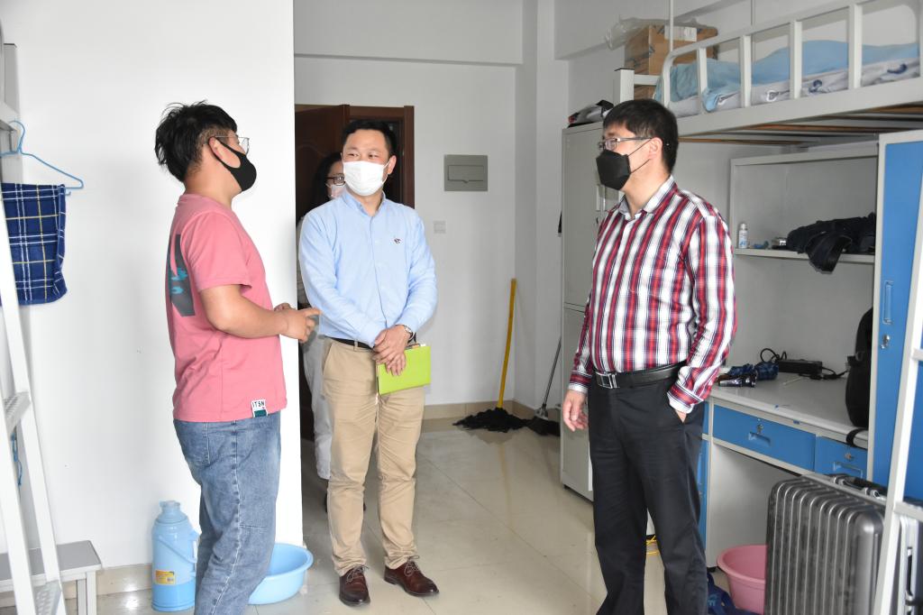 进校后,返校同学沿指定路线返回宿舍楼,并在楼前进行再次测温和身份核验,按要求办理入住手续。早在几天前,为了以崭新洁净的环境迎接学子“回家”,学校宿管老师、学院辅导员等已对宿舍进行了消毒和卫生工作。