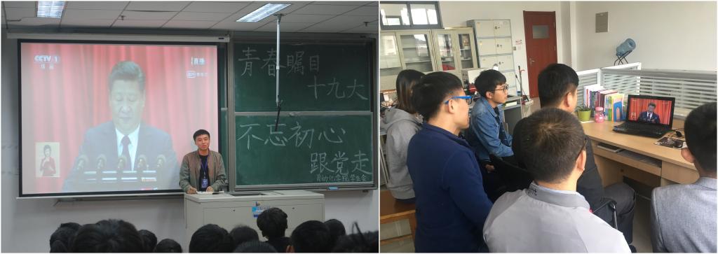 10月18日上午,学院立足实际,组织全体师生在办公室、会议室、教研室等地,通过多种方式、多种途径收听收看了党的十九大开幕会。通过此次收听收看,广大教工党员纷纷表示,将进一步凝聚思想共识,立足本职工作,贯彻落实好中国共产党第十九次全国代表大会精神,加强党的理论学习,不断拓新工作思路,深入研究如何更好地开展管理育人和服务育人,全面提升自身教学能力、管理水平、服务质量,把学院的教育教学质量提高到一个新的水平,学生党员们也纷纷表示,将继续发挥好先锋模范作用,努力学习科学、文化、业务知识,为“双一流”和“五有”高水平大学建设添砖加瓦,成为合格的社会主义事业的建设者和接班人。