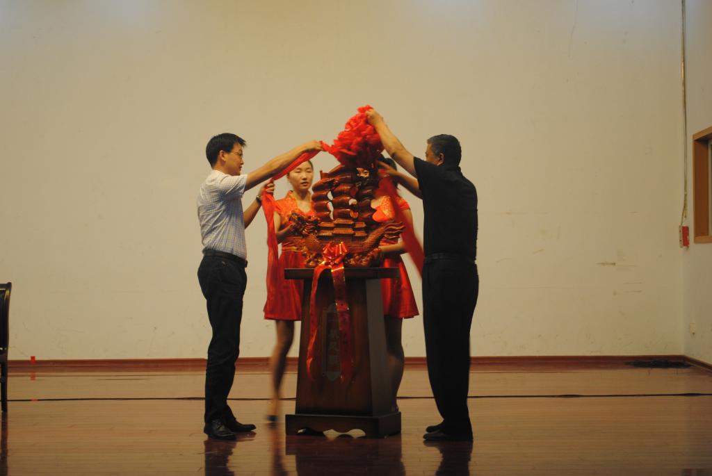学院党总支书记郭仲聚代表学院接受自动化专业2008届校友、山东朗进科技股份有限公司销售事业部总经理王绅宇捐赠。