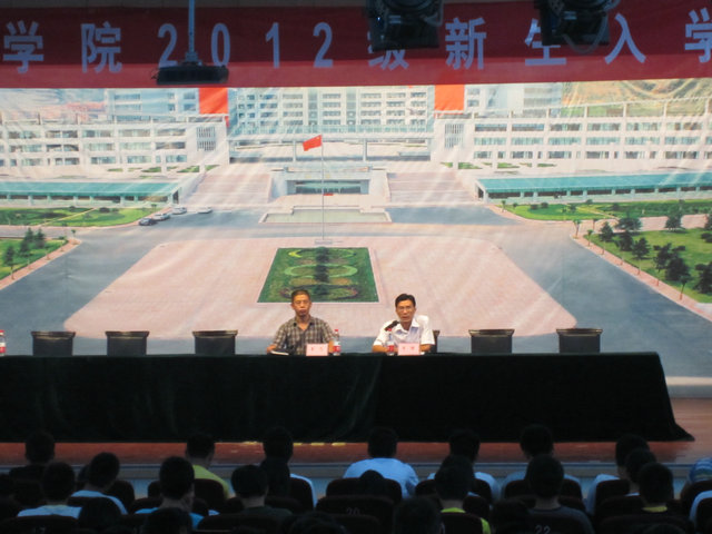 张景瑞向新生介绍了学校的历史以及近些年来的发展状况,并对新生提出了几点希望和要求:首先要求大家不断学习,不断充实自己,利用大学的美好时光多求知多进取;其次号召同学们要保持高尚的节操,学会感恩,学会宽容,己所不欲,勿施于人;然后希望大家尽快适应大学的生活,加强自我管理;最后鼓励大家要志存高远,做一个有理想有抱负的大学生。