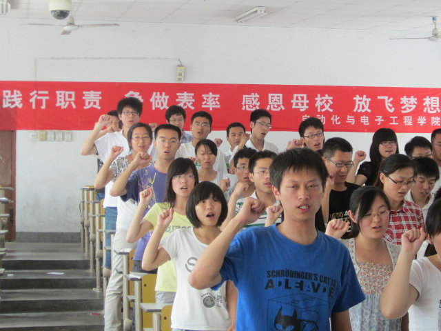 最后,王伟与全体毕业生党员签订了《文明离校目标责任书》,毕业生党员代表张锐带领全体毕业生党员做了“践行职责、争做表率、感恩母校、放飞梦想”为主题的文明离校宣誓,毕业生党员代表史心妍同学带领全体毕业生党员重温了入党誓词。