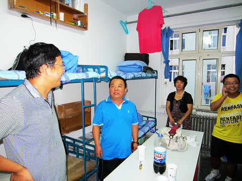 另讯:8月28日晚,学院领导、分团委老师、学生会干部前往学生宿舍看望慰问2011级新生以及部分家长。