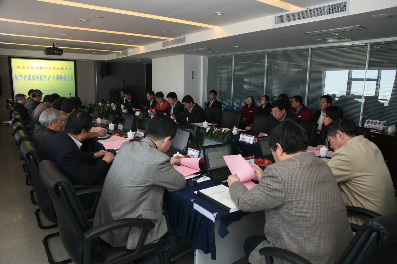 “数字化橡胶轮胎生产专用装备开发”项目是由青岛市科技局组织软控股份有限公司、赛轮股份有限公司、青岛科技大学、天津大学和浙江大学等单位共同完成,共包括5个课题。该项目根据现代轮胎生产理念,研究形成了具有完全自主知识产权的数字化轮胎生产成套解决方案。其中,研发完成了轮胎企业大型信息化系统——轮胎数字化制造管控系统,实现了轮胎企业的全面信息化;开发了RFID芯片轮胎植入与应用关键技术,达到国际领先水平,为我国智能轮胎和车联网的发展提供了重要技术支撑;攻克了密炼先进建模与排胶控制关键技术,实现了炼胶工序生产的自动化和管理的信息化,提高了混炼胶质量,有效降低了企业总体能耗;突破了激光与X光轮胎检测与成像关键技术,并成功应用于轮胎成品检测,实现了该类设备的国产化生产;自主研发了数字化密炼系统、数字化内衬层挤出压延和裁断线、乘用车半钢子午胎数字化成型机、群控液压硫化系统和网络化轮胎检测线等数字化轮胎生产成套关键装备,均达到了国际先进水平。