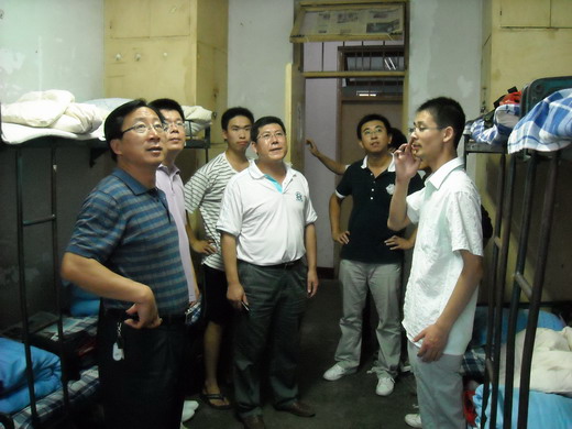 9月5日晚,自动学院党总支书记、院长王培山、副书记吴汉勇和分团委老师前往22号男生宿舍楼看望慰问2009级新生。