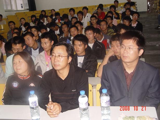 大会由刘名森老师主持,为三个环节:一是由张彦军老师向学生介绍测控专业的相关内容及毕业选择,在各领域的应用,接着又介绍了测控专业课程的安排及学分制定,最后他说明了毕业后学生的基本去向。二是由樊春玲老师向同学们提出学习方面的建议。向同学们强调了大学习为主的思想,并要求同学们确立自己的奋斗目标,不要被周围环境感染。她还回答了同学们提及的有关问题。在第三个环节中,王培山书记向同学们成功考入科大测控专业表示了热烈的祝贺,他同时鼓励同学们再接再厉,努力学好该专业知识,为更好的服务社会打基础。