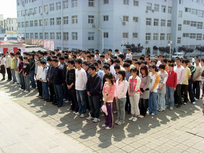 各专业本专科学生及研究生,在青岛科技大学四方校区举行的默哀活动,以悼念在5.12四川8级特大地震中的死难同胞。默哀持续三分钟,在默哀过程中,同学们全体肃立,悲痛之情溢于言表。默哀活动结束后,同学们纷纷表示要做有意义的事,无论捐款捐物,都要为灾区的人民献一份爱心与关怀,同时同学们还强调要化悲痛为力量,全身心投入到学习工作中去,早日成为国之栋梁,为国家贡献自己的力量。最后,同学们还表达了对灾区人民关切之情和重建美好家园的美好祝福。