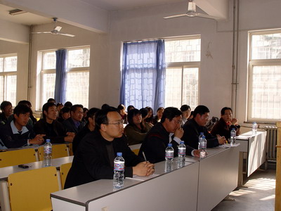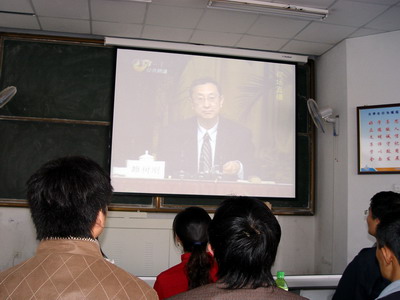 06级研究生党支部书记宁通主持。首先由分团委书记曲斌艳老师首先介绍了“党旗飘扬,党性闪光——学习十七大暨两会精神主题教育活动”的活动安排;副院长童刚老师针对研究生关心的论文发表、导师选择、毕业条件、请假制度等进行了说明,并在业务上对在座的研究生提出了具体的要求;副书记吴汉勇老师就研究生的思想政治教育问题发表了讲话,指出了思想品德的重要意义,并就目前研究生党员发展名额少的现状提出了解决的方案;研究生工作处副处长贺伟老师指出,研究生同学要认真学习,努力做到“五个结合”,尤其是研究生党员更要严格要求自己,以身作则,发挥模范带头作用;最后院党总支书记兼院长王培山老师进行了总结,对研究生思想品德、日常生活等方面提出了进一步的要求,并鼓励大家要多与领导和老师交流,学生和领导老师互相了解对方的想法,这样才能保证研究生工作的顺利进行。启动仪式结束后,作为本次主题教育活动之一,研究生党支部组织各年级党员认真观看了雒树刚教授对十七大报告的深入解读。