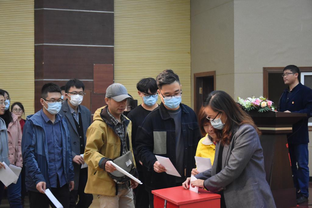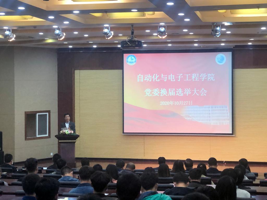 党委换届选举大会在第一报告厅举行,学院全体师生党员参会。