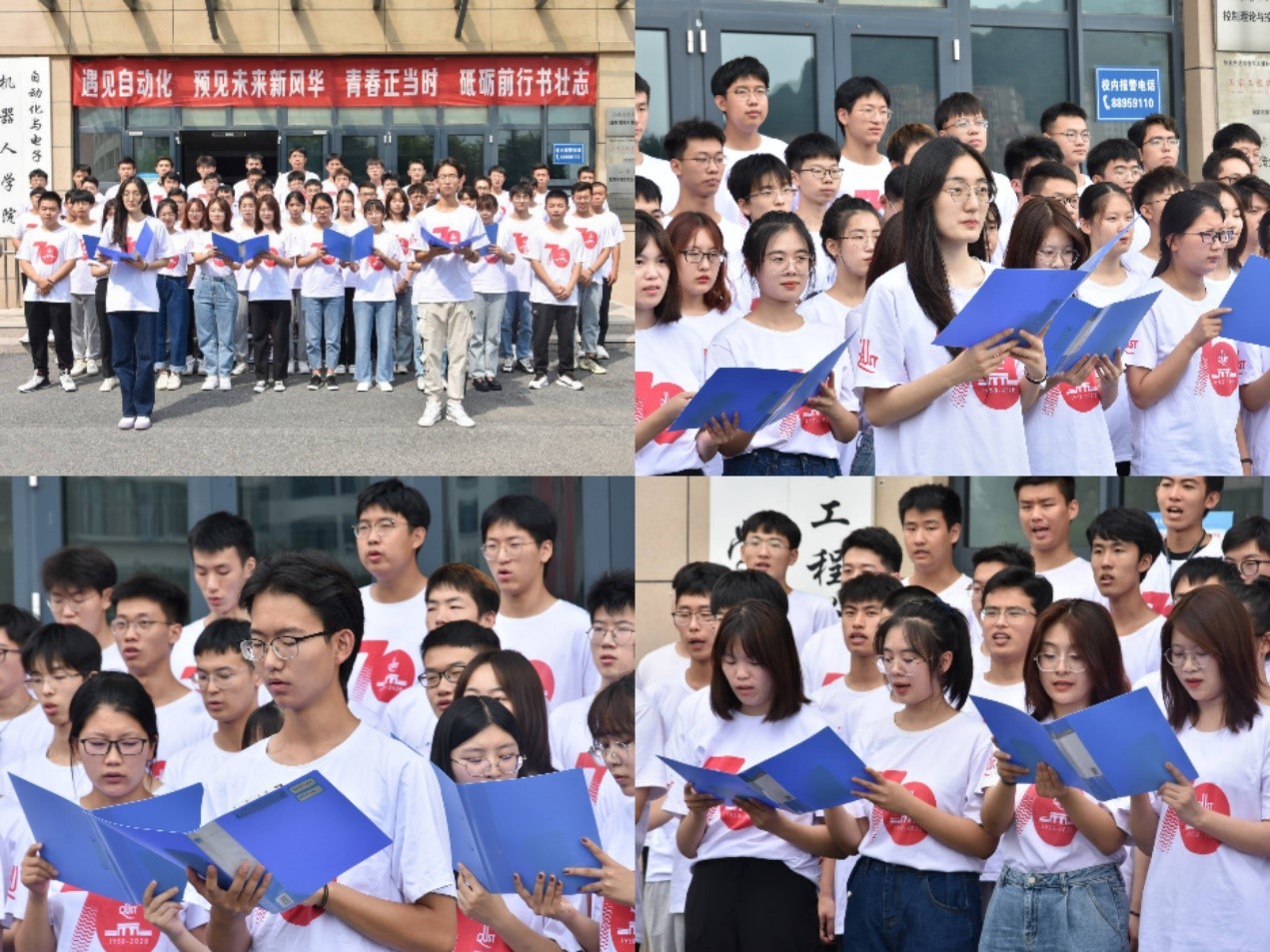 20级积极分子身着七十周年校庆文化衫在学院前开展“纪念九一八集体朗诵”活动。同学们一字一句,慷慨激昂,通过朗诵的形式牢记历史,抒发对祖国的热爱,同时激励自己要奋发图强,自强不息,振兴中华。