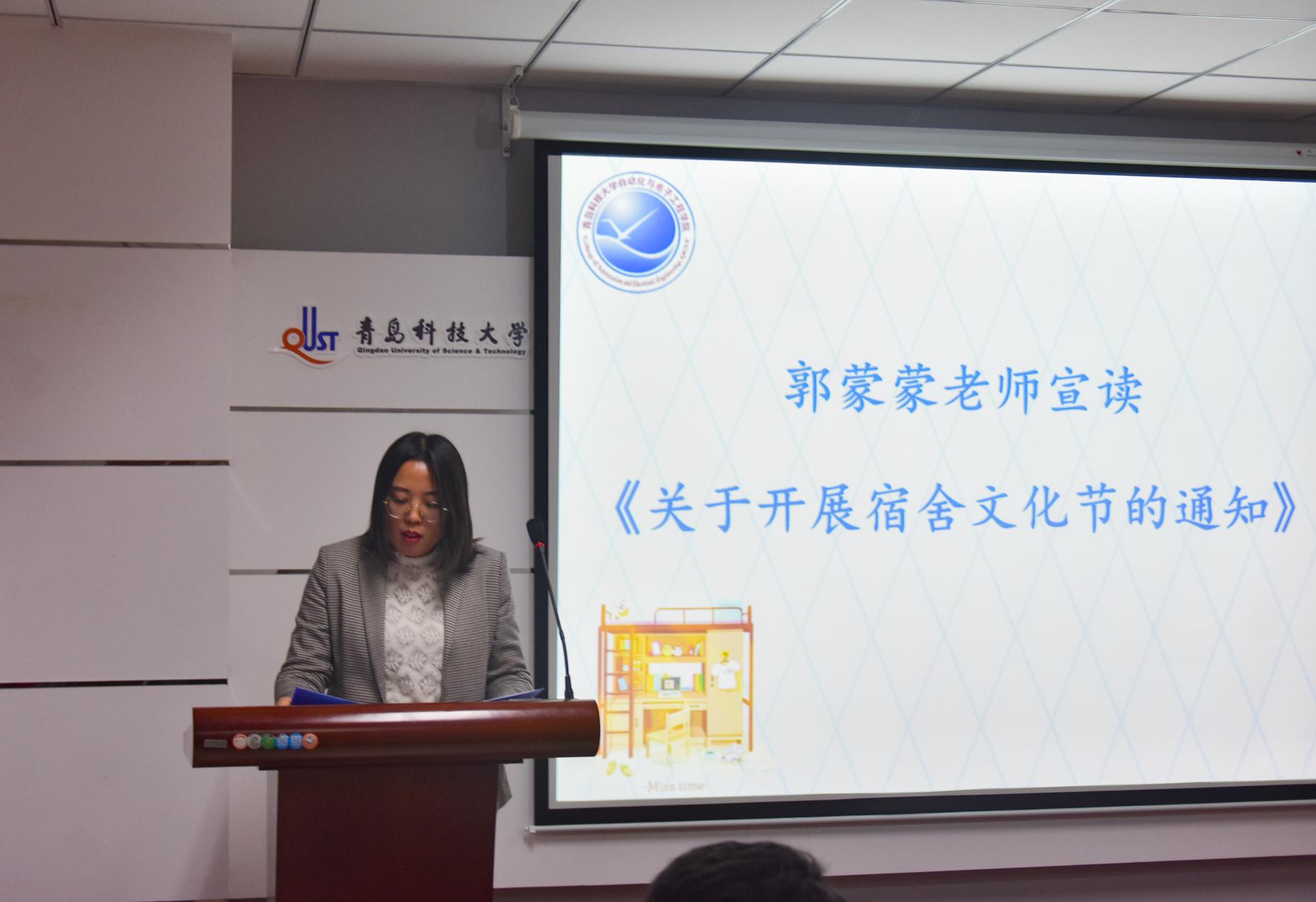 开幕式上,郭蒙蒙老师宣读《关于开展宿舍文化节的通知》,于彬老师宣读宿舍条例。