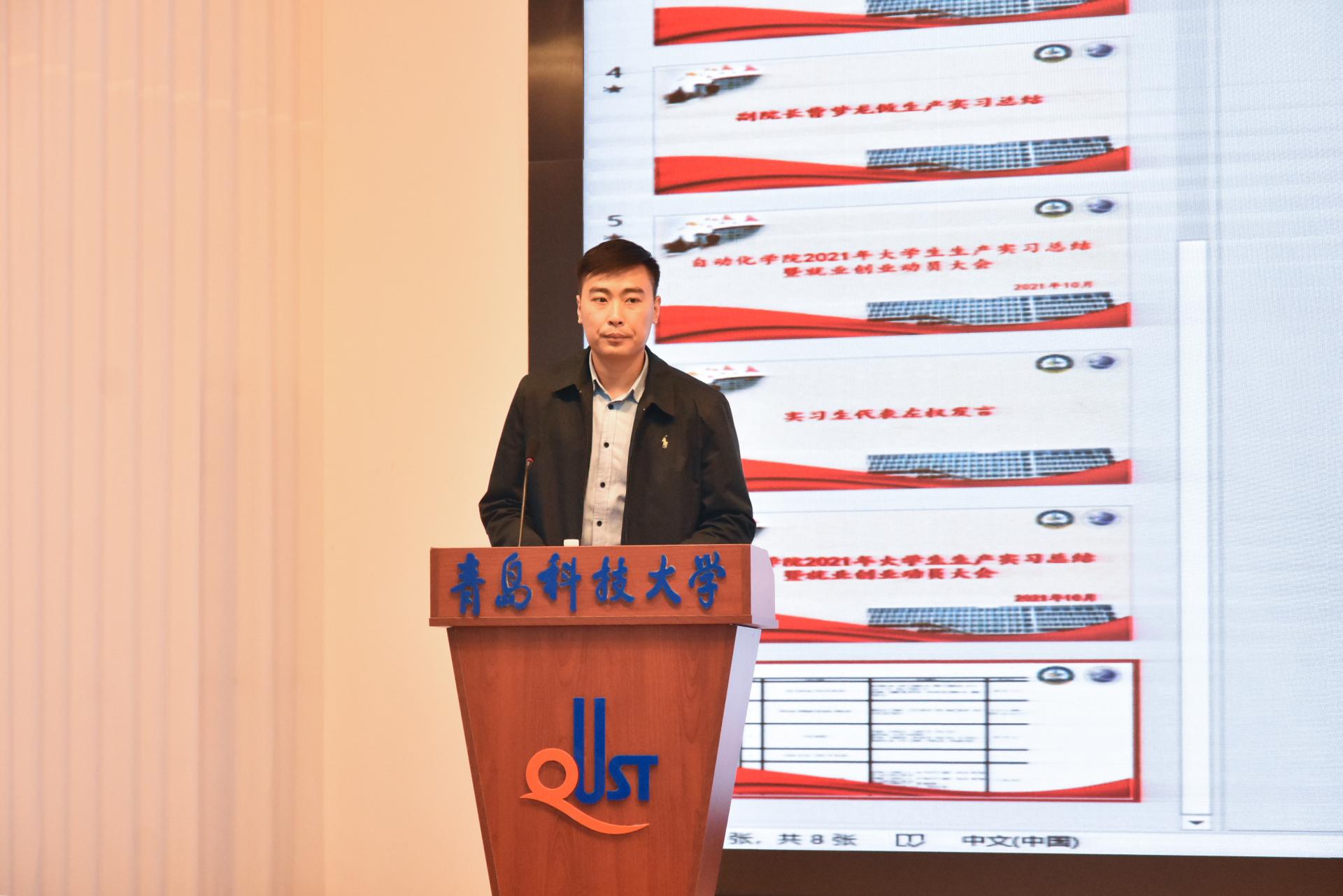 学院副院长曹梦龙总结了本次生产实习工作。他首先感谢合作企业能在疫情期间为同学们提供实习机会,为校企合作育人搭建了一个良好的平台。随后他介绍了本次“大循环、小循环、单循环”生产实习模式,就实习的内容、过程以及成果做详细讲解,对本次生产实习取得的成绩表示肯定。同时,他表示学院将继续发展完善教学与学生工作相结合的多维度生产实习模式,希望同学们能够积极参与实习工作,巩固专业知识,提高动手能力,成为心有国之大者、行有高超本领的有为青年。
