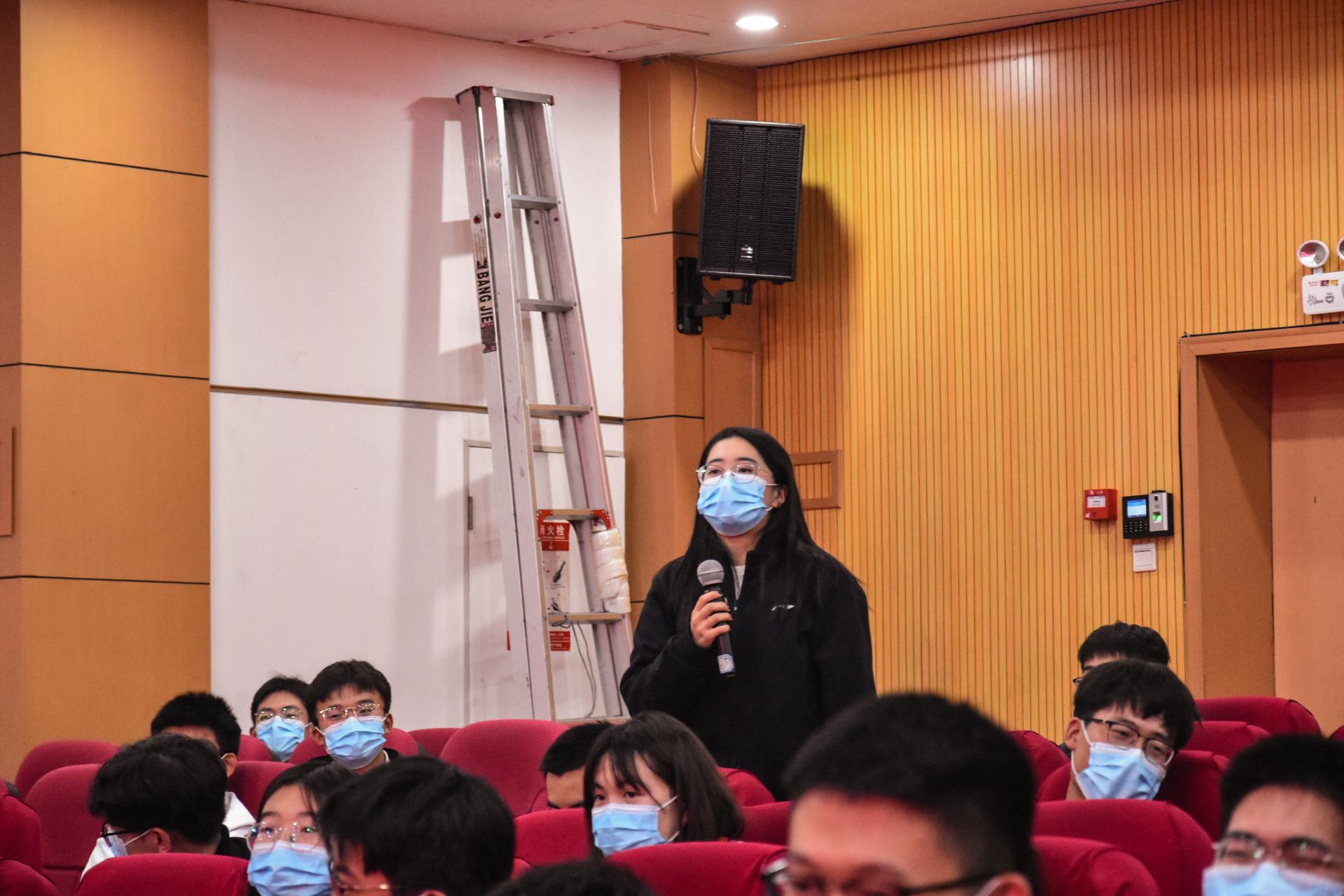 师生互动环节,同学们针对新生入学适应、学习方式方法、学习资源利用、宿舍学风营造等方面积极提问,老师们结合自身经验为同学们逐一答疑解惑,提出切实有效的建议。