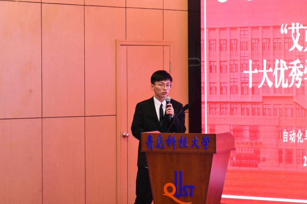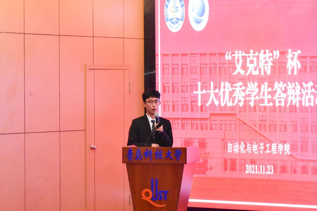 于11月23日下午在崂山校区英科报告厅举行第七届“艾克特”杯“十大优秀学生”答辩会。学院副院长、院校友会副会长曹梦龙,学院党委副书记兼副院长、院校友会秘书长马寒,团委书记兼学工办主任郭蒙蒙,团委副书记兼学工办副主任于彬、郝雄文,全体团委老师以及各年级学生代表参加活动。此次答辩会通过自化易班工作站抖音账号线上同步直播。