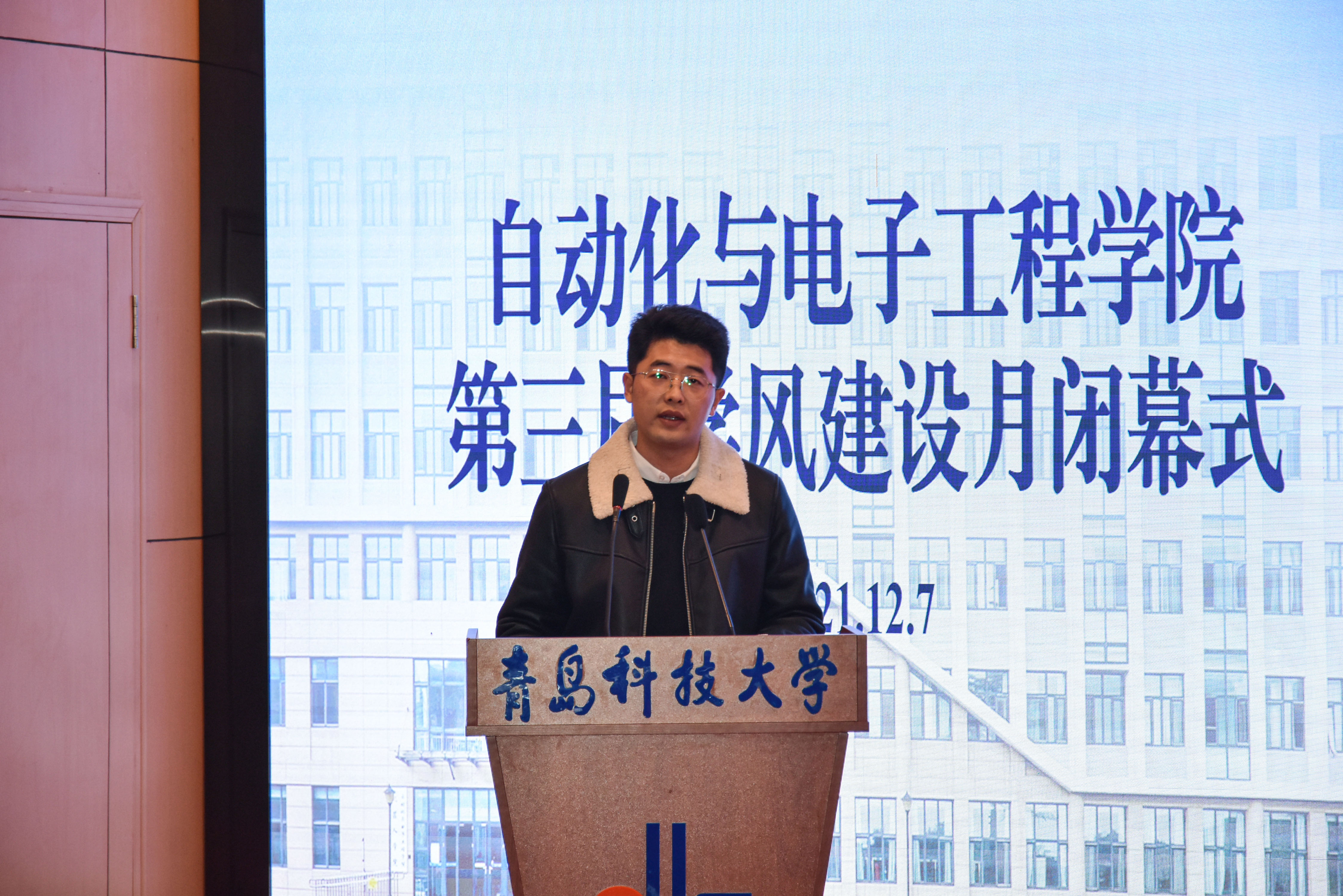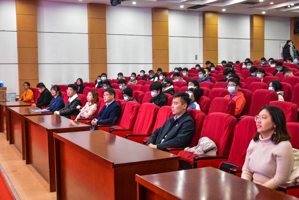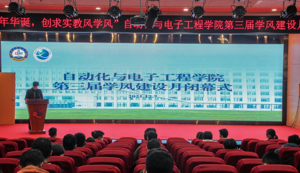 于12月7日下午在崂山校区英科报告厅举办第三届学风建设月闭幕式。学院党委副书记兼副院长马寒,团委书记兼学工办主任郭蒙蒙,团委副书记兼学工办副主任于彬、郝雄文,全体团委老师以及21级学生代表出席本次活动。