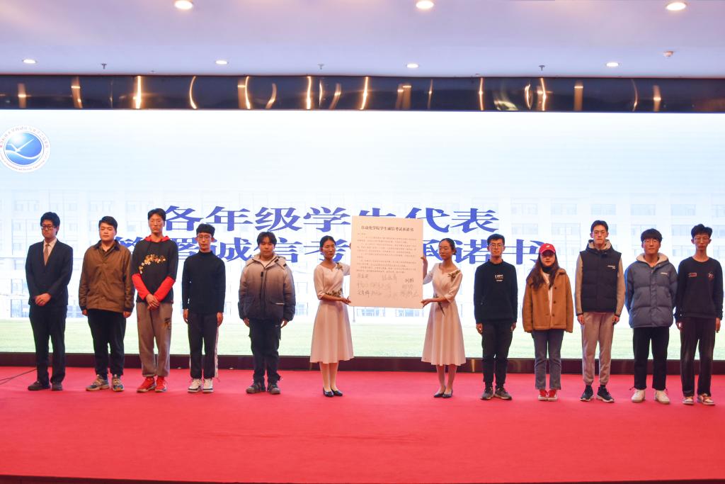 闭幕式最后,各年级优秀学生代表上台在诚信考试承诺书上签字,号召全学院学生树立诚实考试意识,严肃考风考纪。