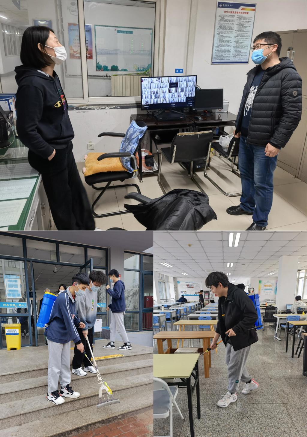 生活保障“暖心”,守护学子安心。校园封闭管理初期,不少学生表现出对生活物资、看病就诊等问题的担忧,各年级辅导员第一时间深入学生宿舍,明确防疫政策及保障措施,特殊学生一对一谈心谈话,及时发放相应防疫物资,打消学生的焦虑顾虑;对于疫情防控期间学生发热、腹泻等需外出就诊情况,严格按照学校流程,辅导员陪同转诊,时刻关注入住隔离宿舍后的生活、身体健康情况;现阶段宿舍成为学生学习、生活的主要阵地,学院落实落细“我为青年办实事”,规范化管理宿舍内学习吧,制定《学习吧座位管理规定》、《学习吧值班条例》,组织学生会、星火义工队定期整理宿舍“学习吧”桌椅、私人物品,为更多学生提供学习场所,保证学习吧公共资源的使用效率,保持文明整洁的学习环境,进一步提升学生学习质量;严把宿舍消杀关,开展宿舍全面清洁消杀工作。学院领导及全体辅导员带头上阵,组织学生例行大扫除,全方位清洁消杀北七宿舍楼,消除安全隐患,营造干净、整洁、和谐的宿舍环境。