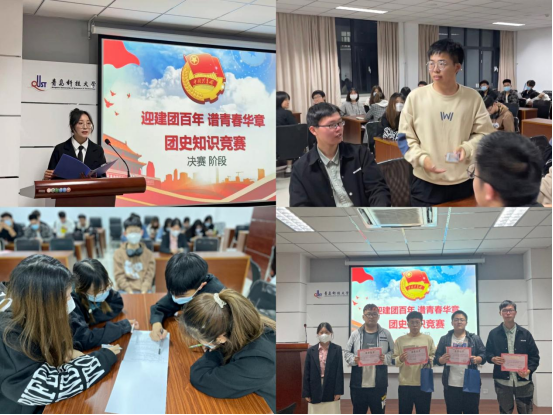 以赛促学,线上线下开展“迎建团百年,谱青春华章”团史知识竞赛,在比拼中“学好”党领导青年运动的百年历史;以文载情,通过主题征文活动号召青年学子以“党、团的故事”为背景主线紧密围绕党史、团史学习领会,结合青年人、青年事,讲述青年在新时代新征程中与祖国的故事,以热情讴歌党、团的百年辉煌画卷,以笔墨展现朝气蓬勃的青年风采。