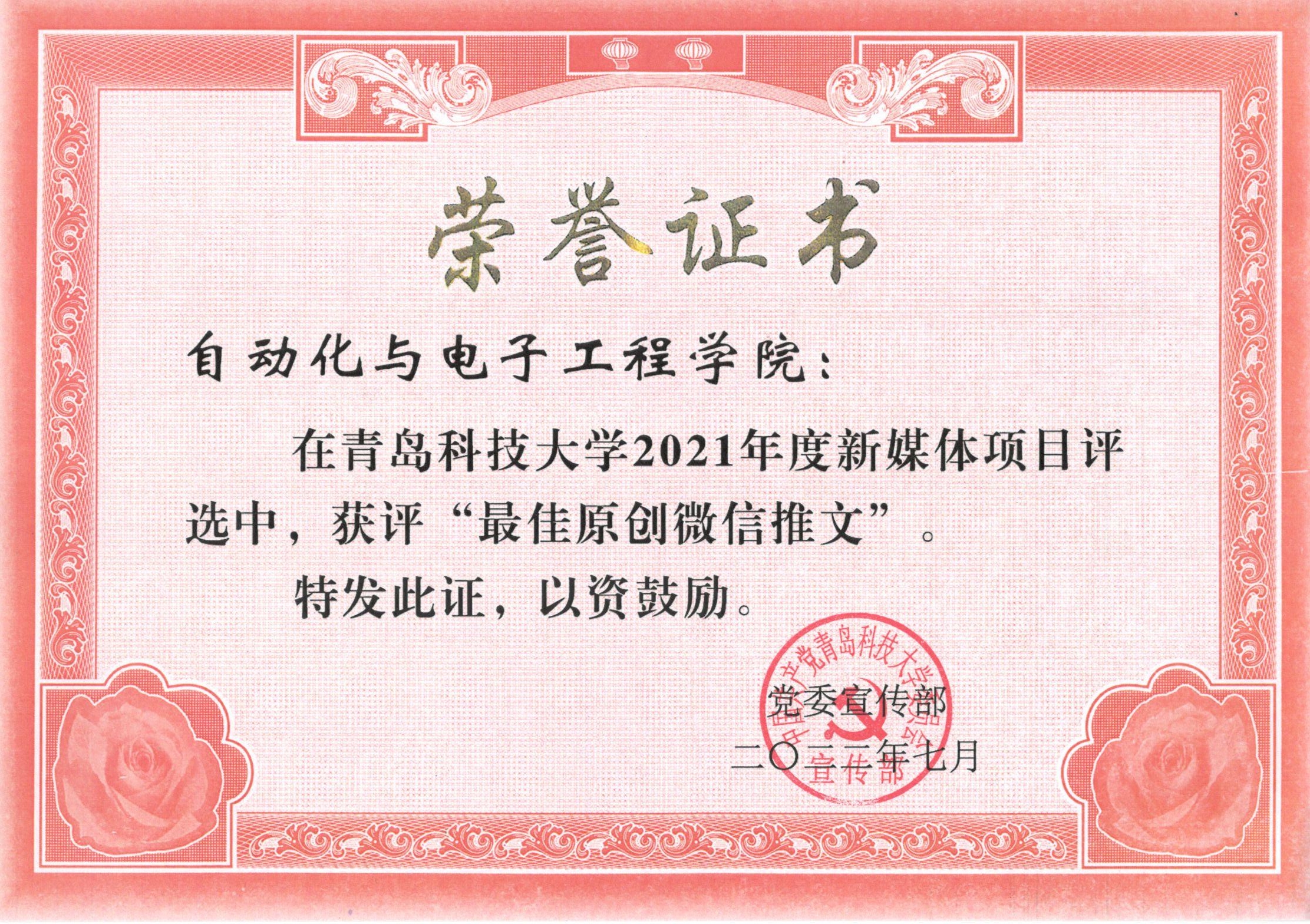 作为全校5个获评学院之一,微信公众号“微自化”荣获2021年度最具影响力微信公众平台,并获得最受欢迎微信公众号,学院网站荣获2021年度优秀网站,学院原创作品荣获“最佳原创微信推文”和“最具影响力短视频”。