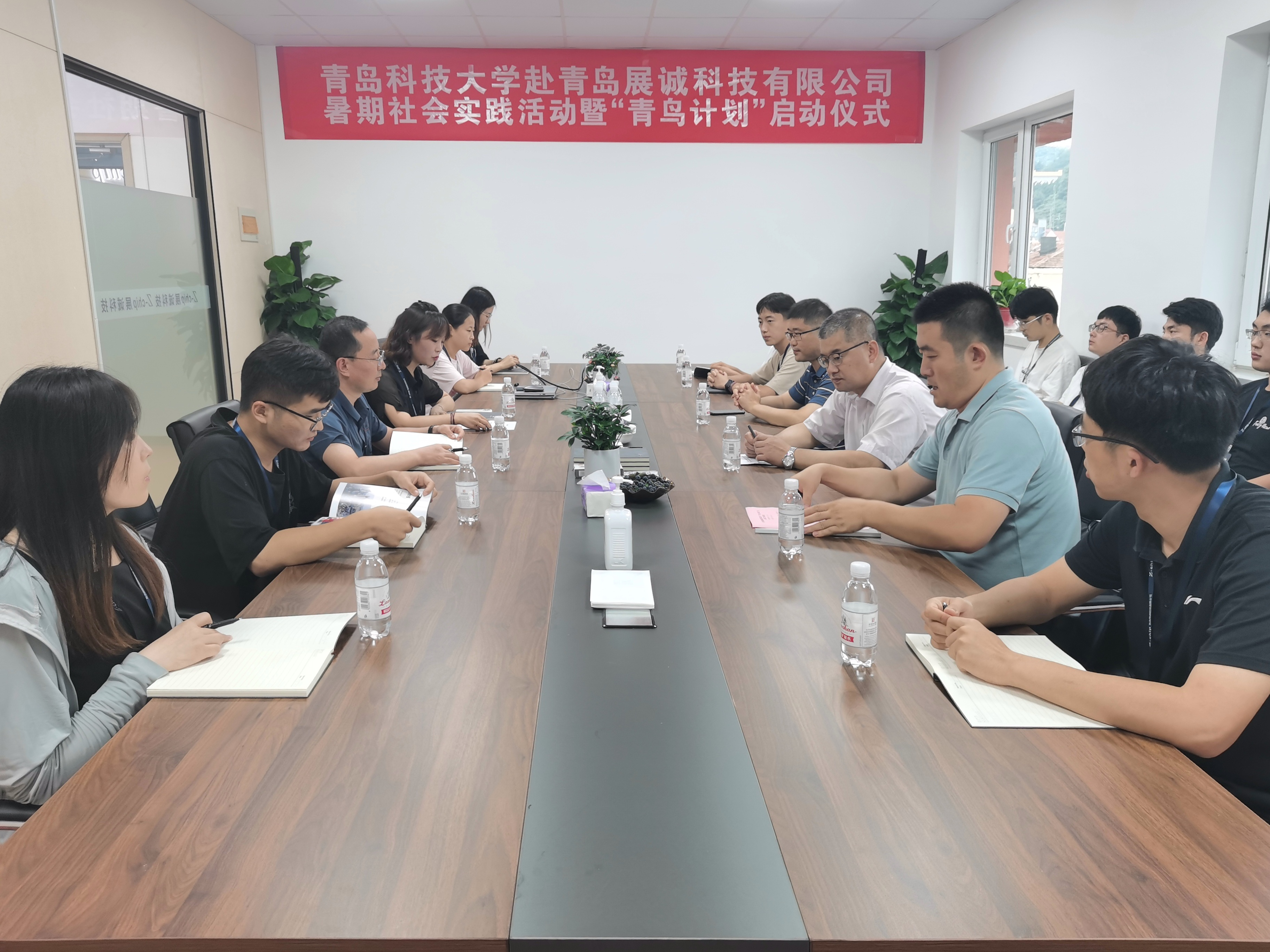 “名企行”活动赴青岛展诚科技有限公司开展暑期社会实践暨“青鸟计划”启动仪式,共青团青岛市委统战部副部长李叙军、青岛展诚科技有限公司副总经理李世密,青岛科技大学团委副书记陈兵、免费成人漫画