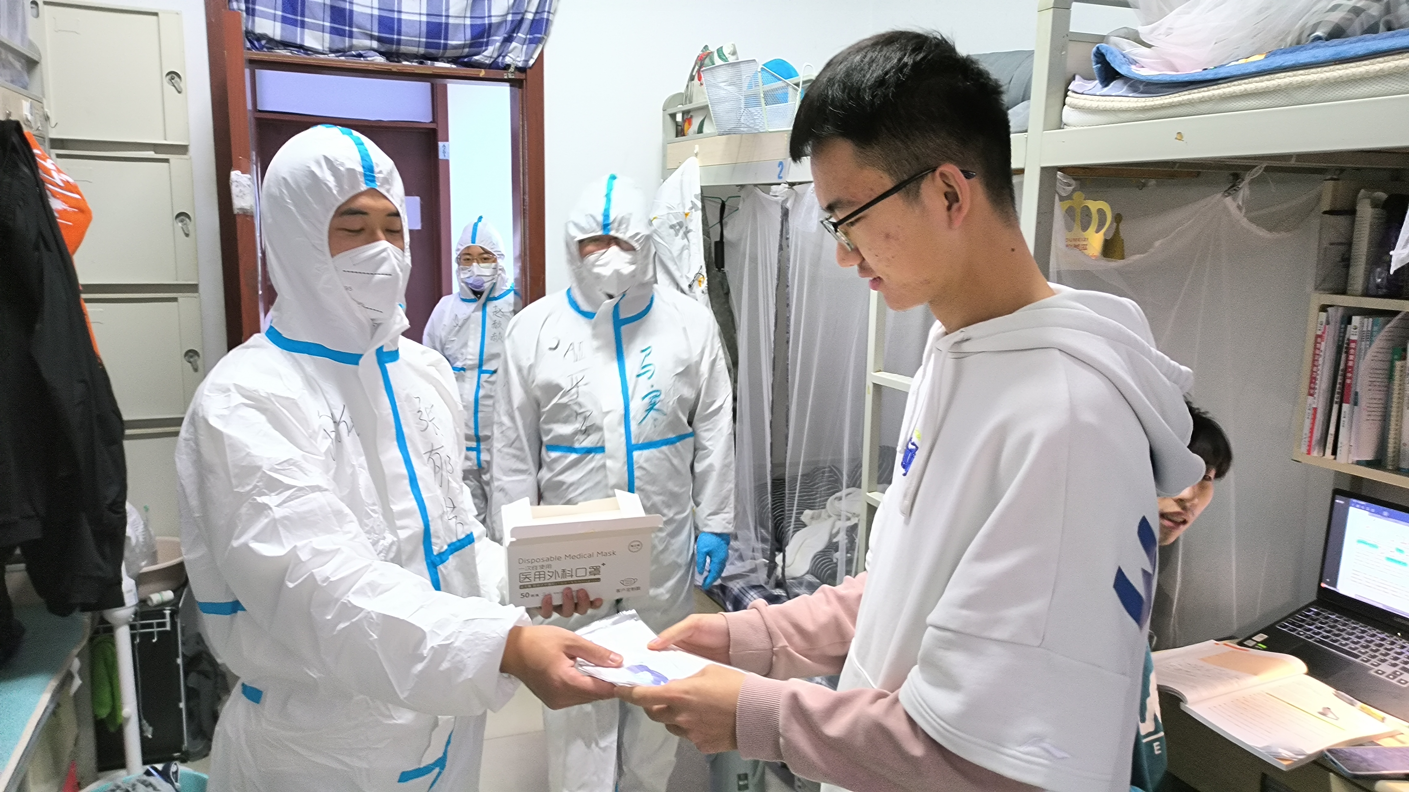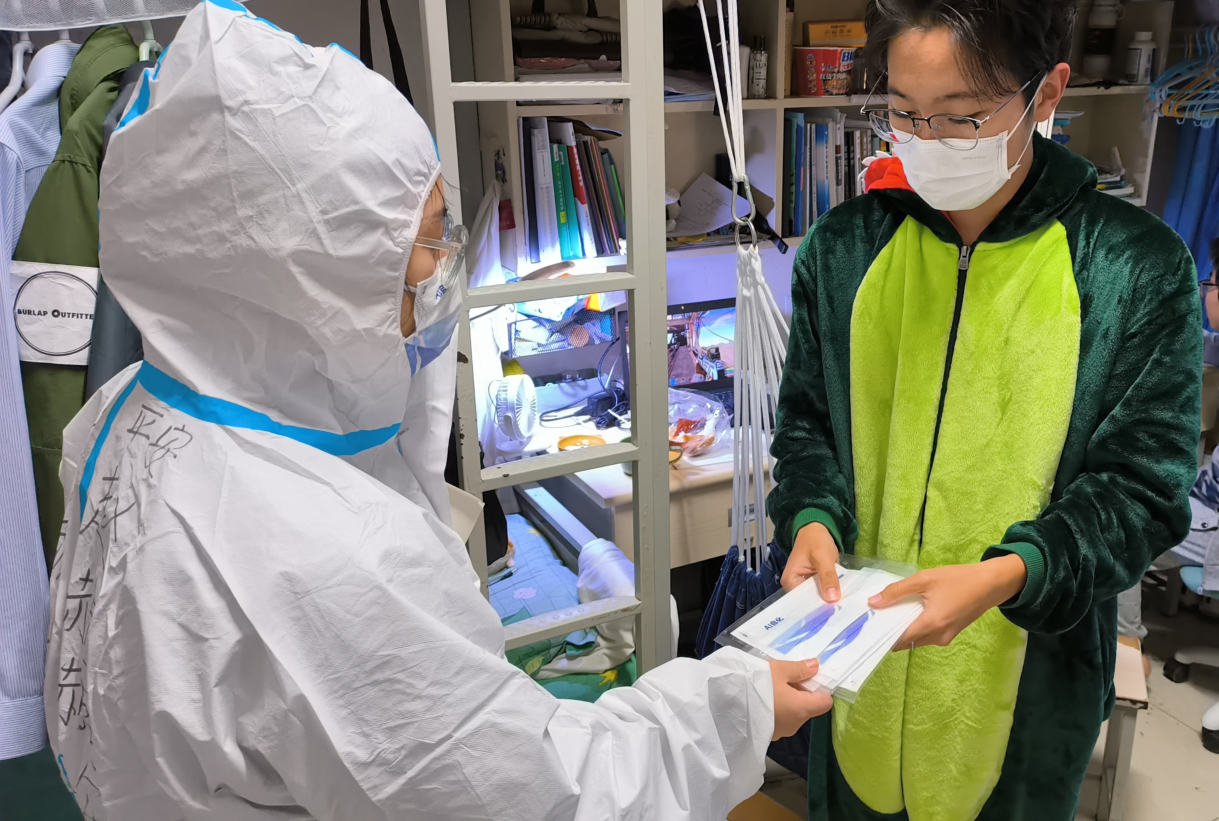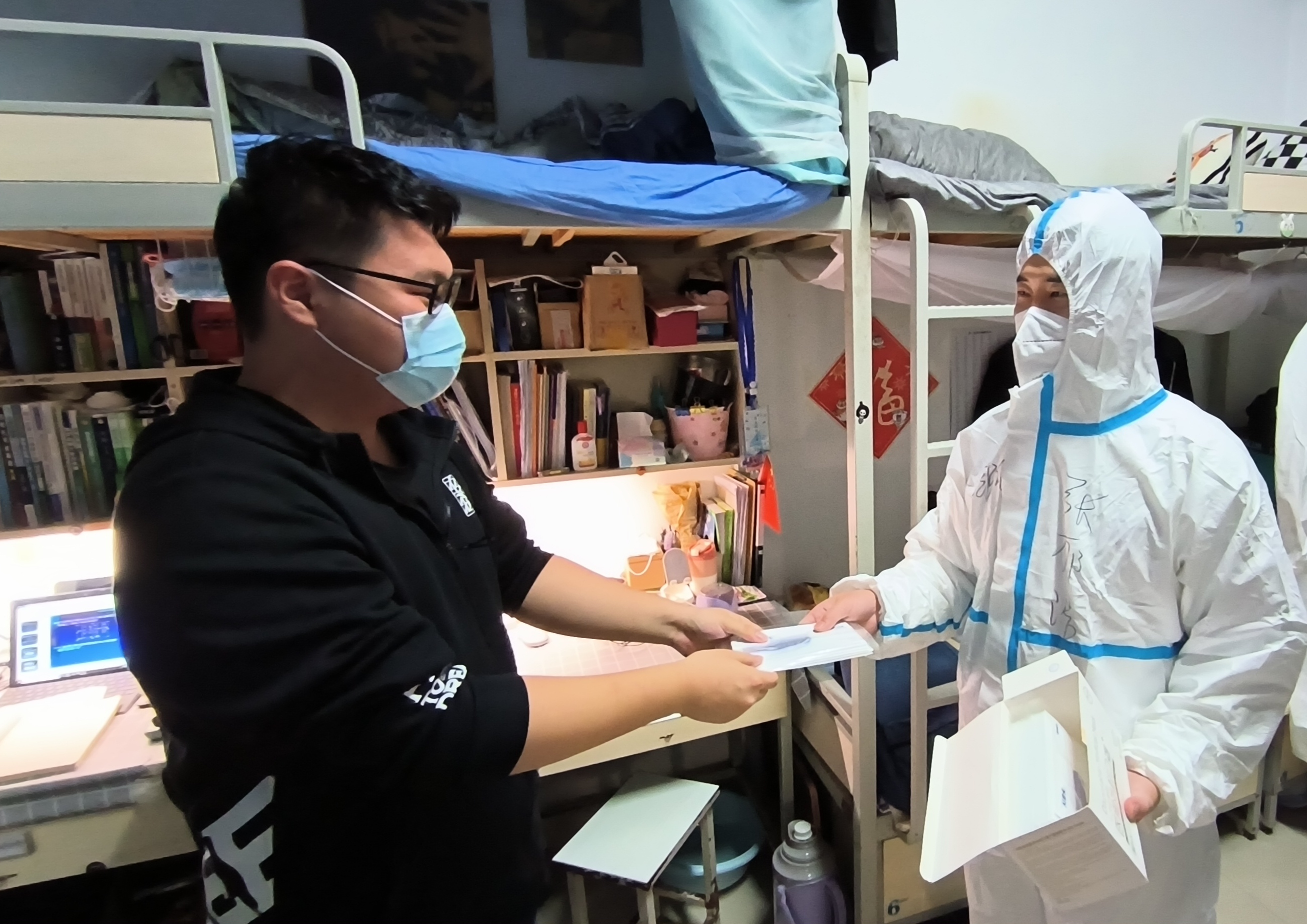 北区七号楼作为目前在校学生人数最多的公寓,在信息摸排、核酸检测、餐食分发、错峰洗漱如厕等方面的工作量大、工作难度高,为此学院第一时间落实好“楼长——层长——宿舍长”三级网格化管理体系,并调动学院星火义工队作为机动支援保障团队,形成“网格有序、机动灵活”的疫情防控志愿服务机制,搭建起一条能吃苦、肯奉献、靠得住的“战疫白”传送带,确保楼内近1900份餐食以最高效率到位,尽全力解决学生的困难问题和实际需求。依托“战疫”临时团委,聚焦共青团三力,组织学生开展“共战疫情,强健体魄”线上健身、“云端相聚,同上思政大课”观影等系列特色活动,定期在线上联系隔离转运学生了解近况,带动他们参与到各类活动中去,做到思政教育不断线,隔离疫情不隔“爱”。