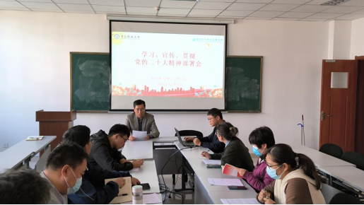 在学院406会议室开展学习贯彻党的二十大精神部署会暨党支部书记培训会,学院党委书记吕德谦、党委副书记兼副院长马寒、全体党支部书记参加本次会议,会议由马寒主持。