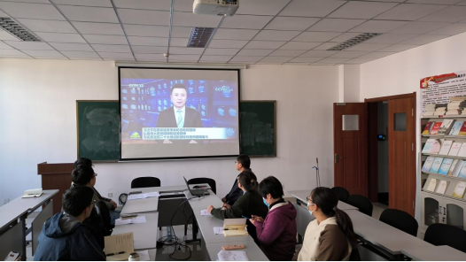 与会人员共同观看了习近平总书记带领新一届中共中央政治局常委赴陕西延安瞻仰延安革命纪念地的新闻。