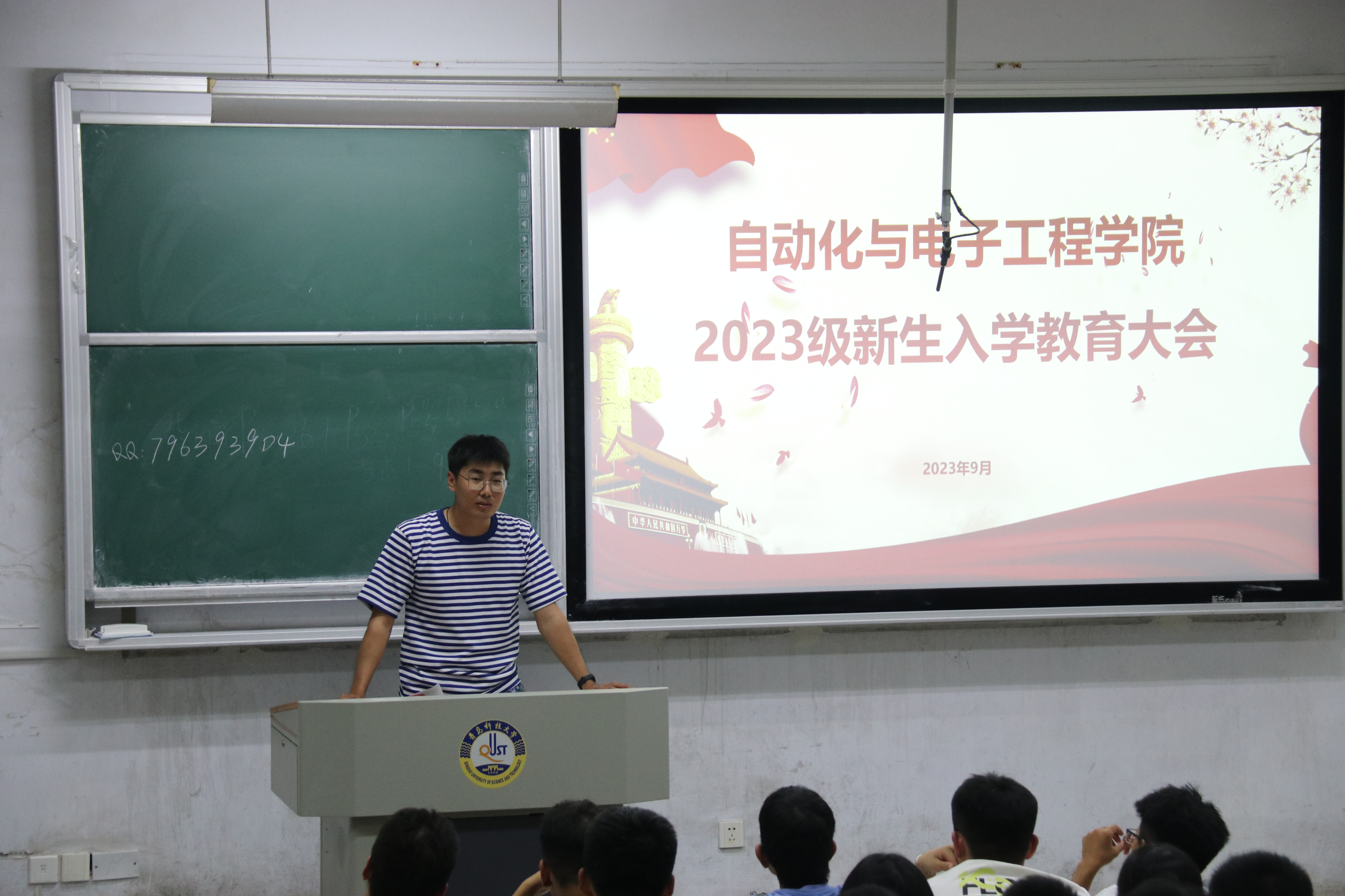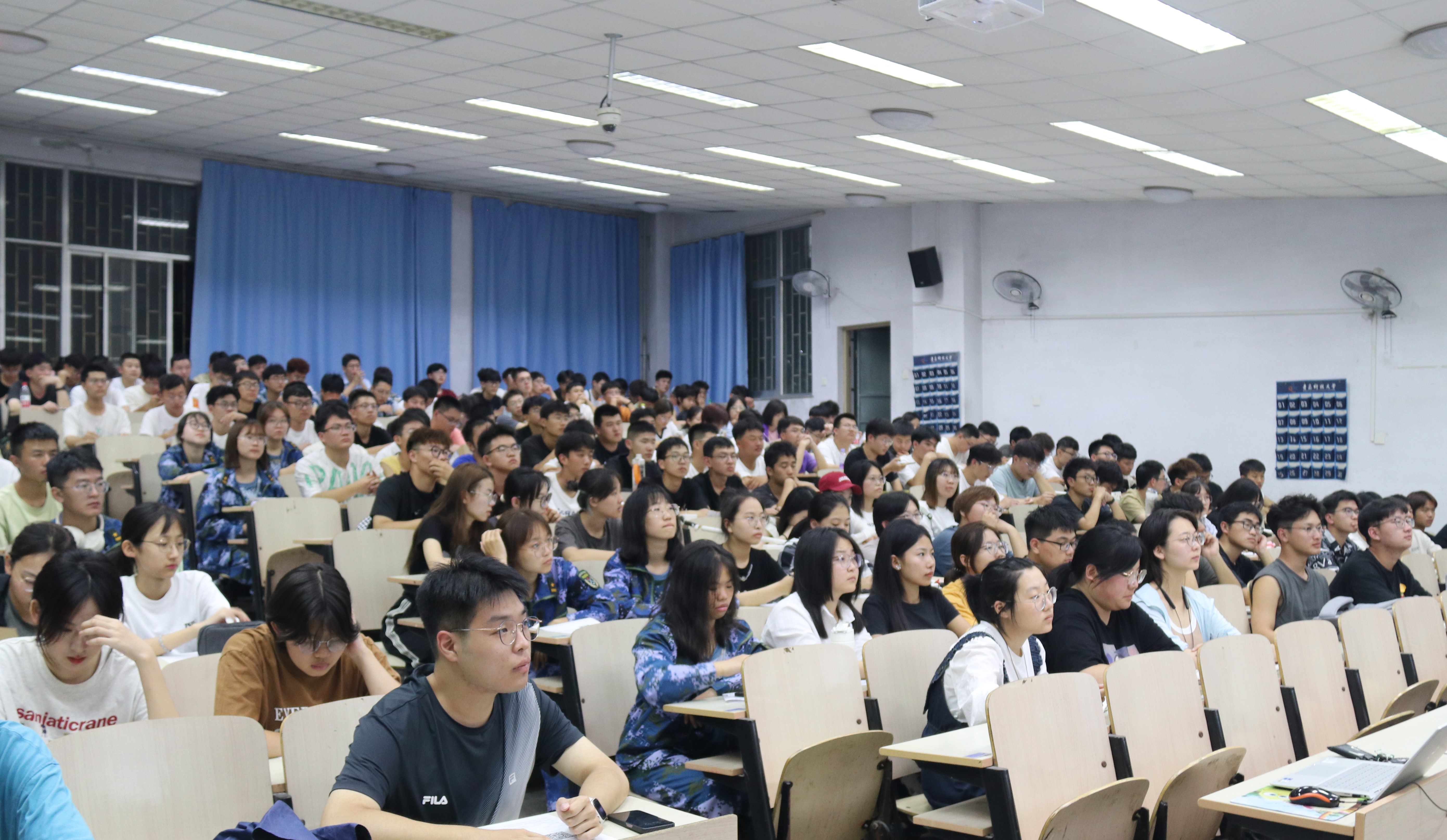 随后,刘志飞从大学生活、大学学习、大学规划等方面给同学们进行了详细的讲解,以生动的案例分析和故事叙述让同学们对大学有了更进一步的了解。面向2023级全体学子,他重点从三方面提出了期望和要求:一是树立良好的科研学术风气。学如逆水行舟,不进则退。希望同学们在未来的四年里能够专心学习、潜心研究、积极进取、锐意创新,让自己的梦想在大学得以开花结果,让自己的青春在大学中渲染出最绚丽的色彩;二是大学是同学们进入社会的过渡期,同学们要尽快适应大学新环境,养成良好的生活习惯,熟悉专业培养计划,制定明确的学习目标。最后,期望同学们在大学收获知识的同时,能够认识一帮志同道合的朋友,学习一些工作必备的技能,为未来的道路打下坚实的基础,为自己的梦想绘制最美丽的拼图。