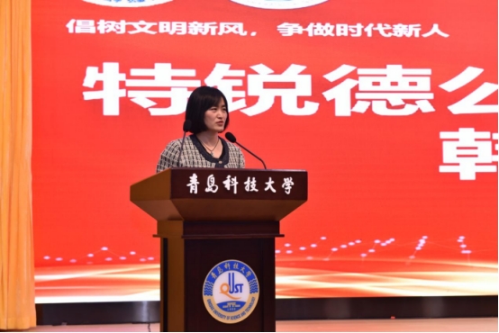 韩增雪介绍了青岛特锐德电气股份有限公司的基本情况,回顾了公司成立以来与学校和学院的合作关系,并祝愿2023级学生学有所成。