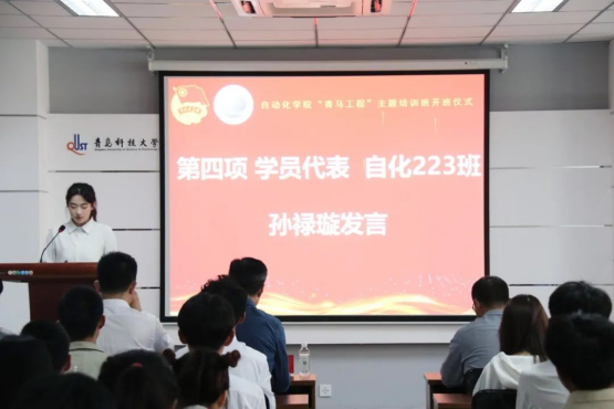 学员代表、自化223班团支书孙禄璇发言,她表示,作为新时代青年,肩负着更多的责任与义务,希望全体学生骨干坚定理想信念、补足精神之钙、筑牢信仰之魂,成为一名真正的青年马克思主义者,为建设“特色鲜明、走在前列”的高水平大学贡献“自”家力量。