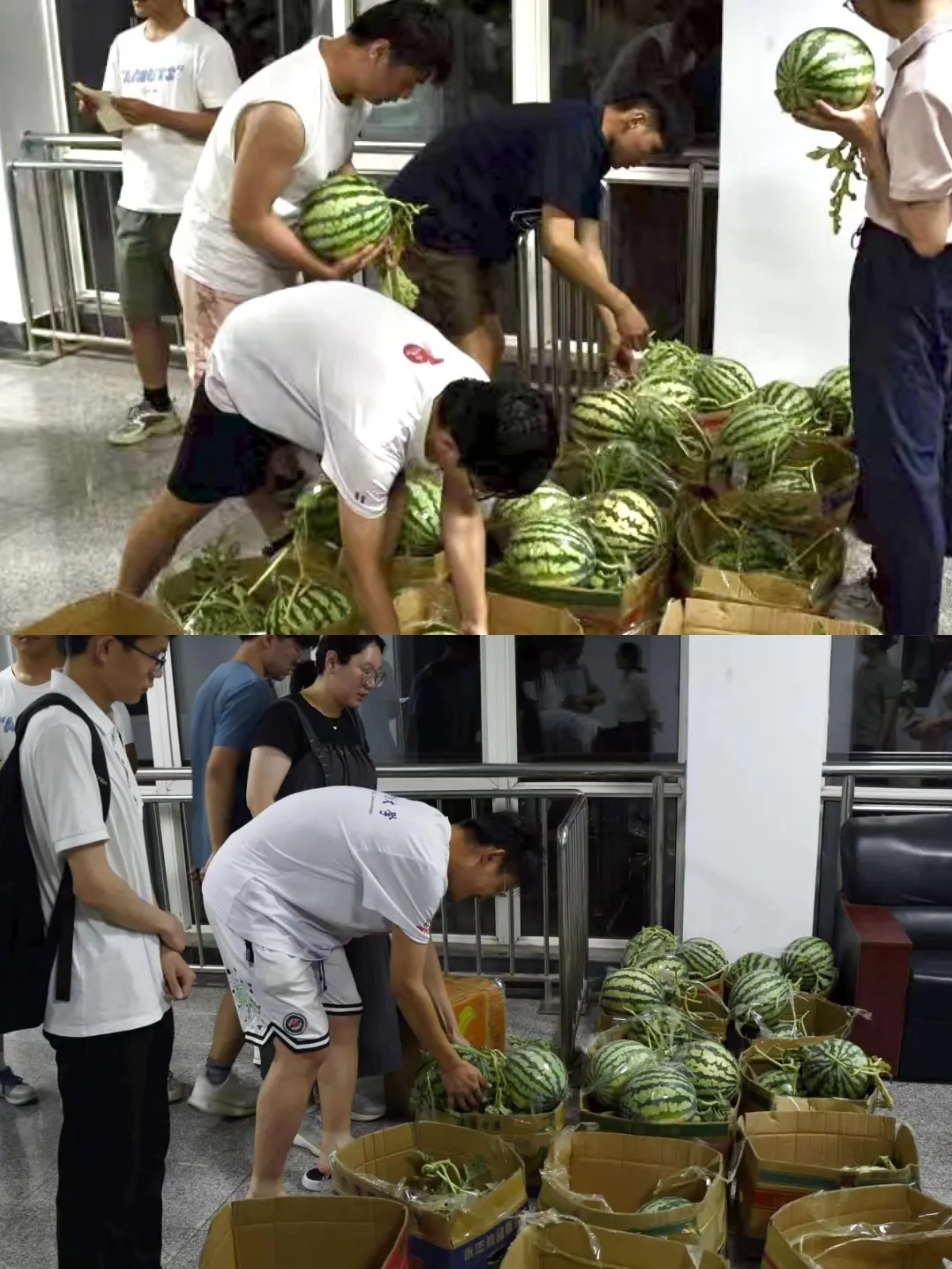 西瓜是夏日标配,也是学院对于“自”家毕业生的一份甜蜜心意。老师们带着寓意未来生活事业“顶呱呱”的西瓜,为全体毕业生们送去离校前的最后一次叮咛和嘱托。毕业生们有序分瓜,脸上洋溢着满足和幸福的笑容,感受到了学院对“自”家学子的关心和祝福,纷纷表示将带着这份“自”家专属的清凉甜蜜满怀信心和动力地迈向人生新征程,踏实工作、勤奋学习,在新的人生起点上挺膺担当、接续奋斗。