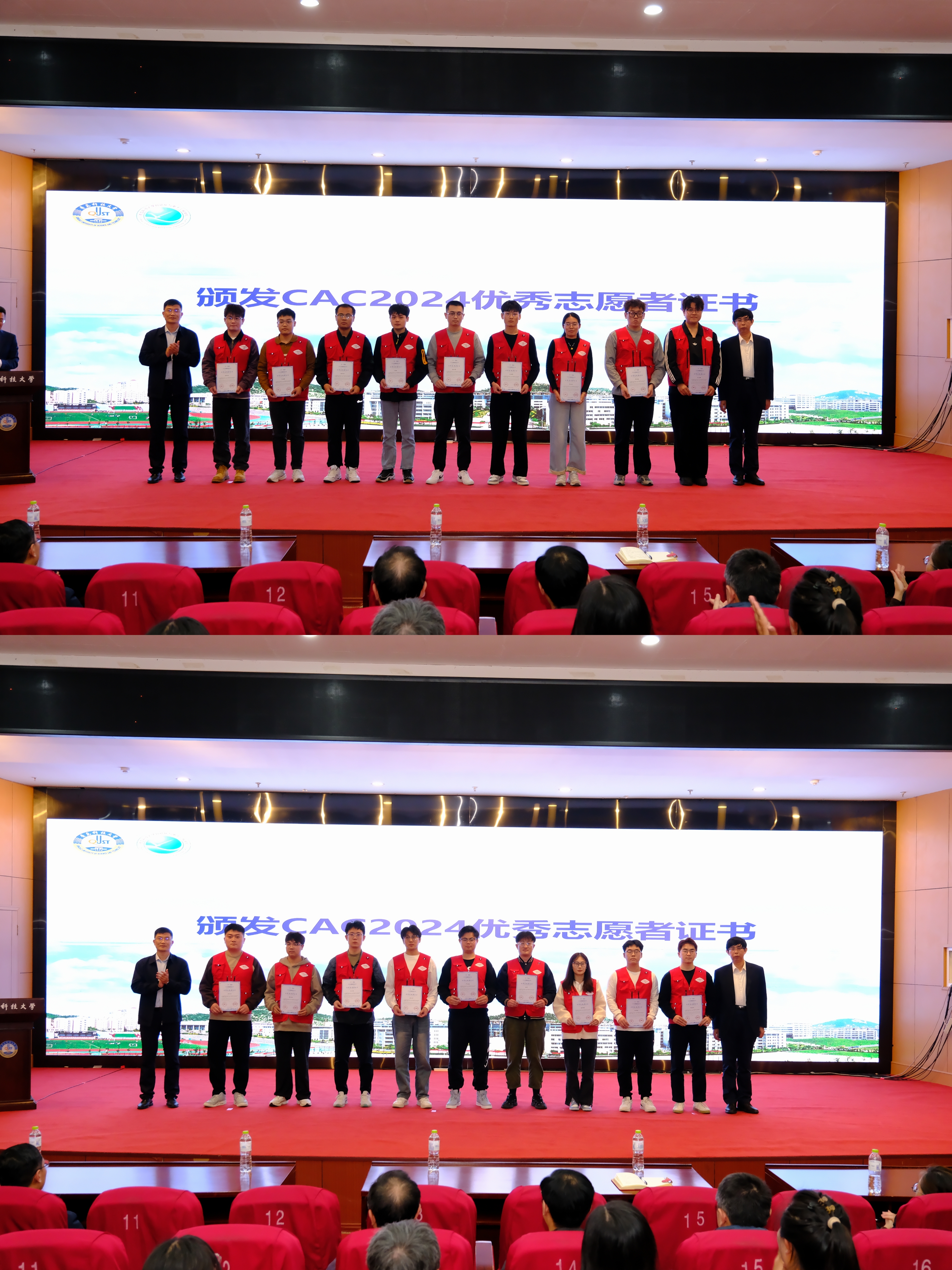 会上,张楠秘书长宣读了中国自动化学会给青岛科技大学的感谢信,李少远、李鲲鹏为在2024中国自动化大会中表现突出的18名优秀志愿者颁发了荣誉证书。与会人员共同观看了自动化人精神发布视频及中国自动化学会宣传视频。
