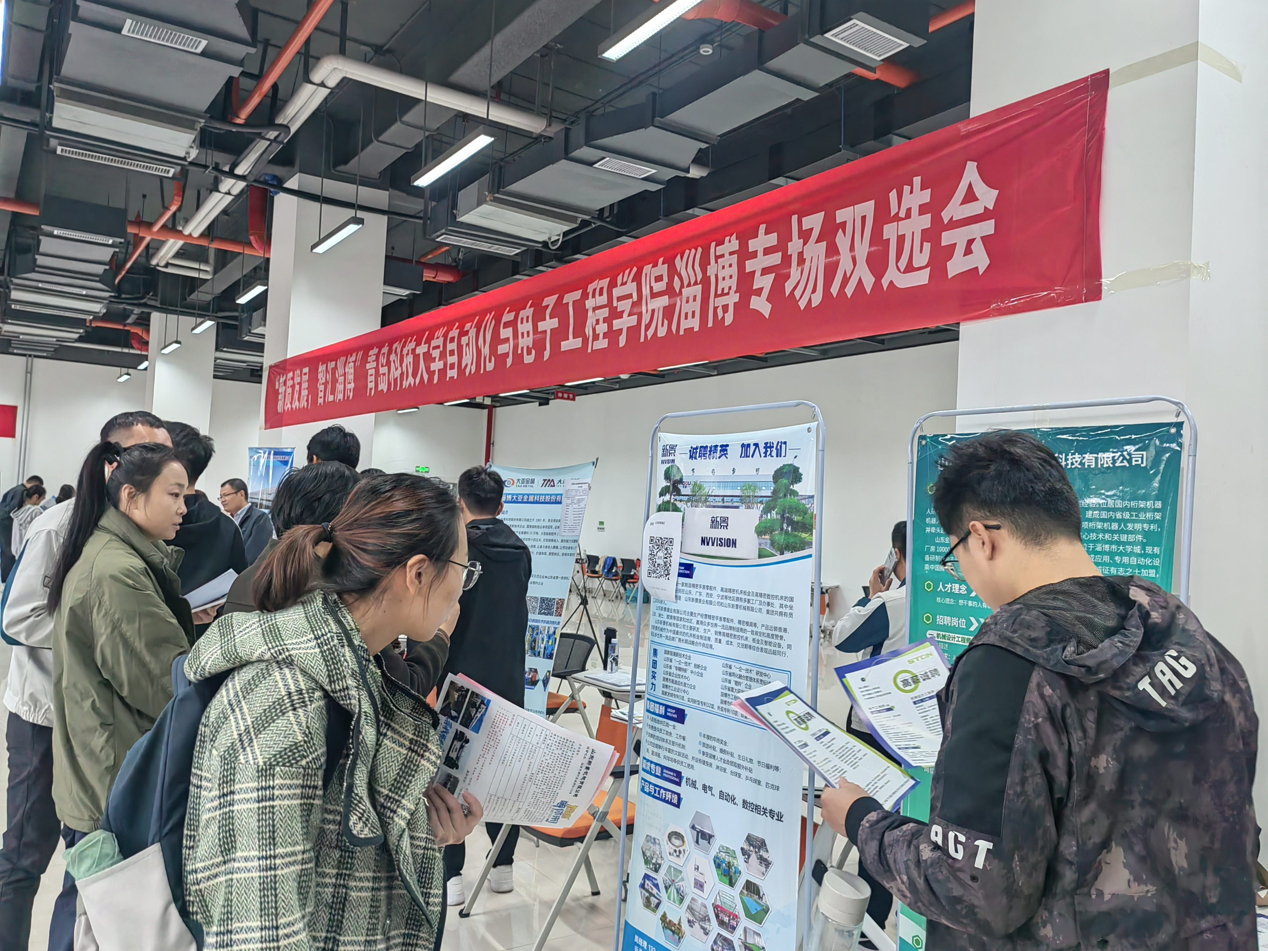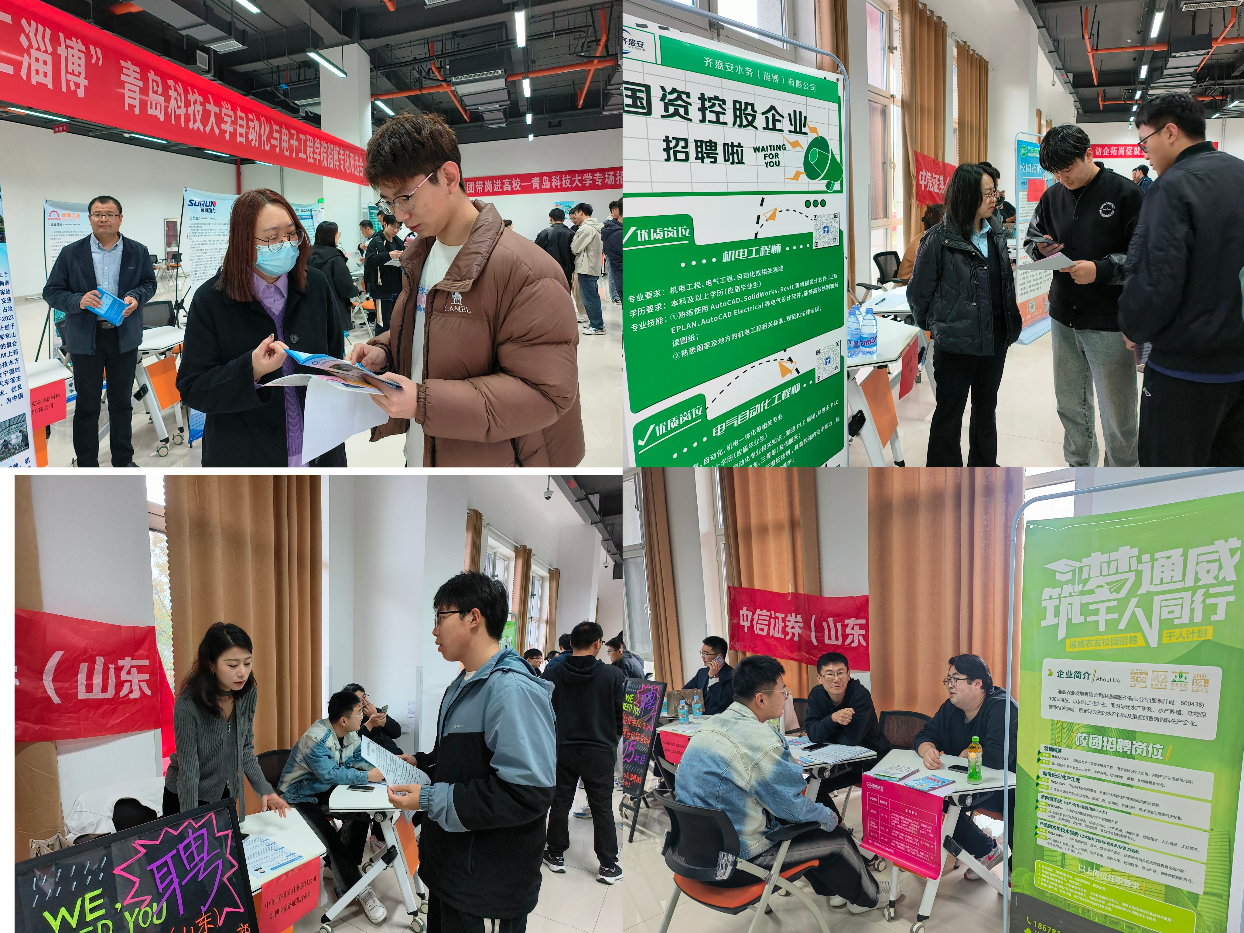 联合淄博市人社局就业人才中心,在淄博教科产融合基地举办“新质发展 智汇淄博”2025届毕业生专场双选会。此次双选会靶向邀请新华制药、英科医疗等27家当地优质企业,面向自动化、电气工程、计算机、仪器仪表等多个行业专业,提供招聘岗位230余个。近500名在淄博教科产融合基地生产实习的学院2025届毕业生参加,据不完全统计现场投递简历400余份。