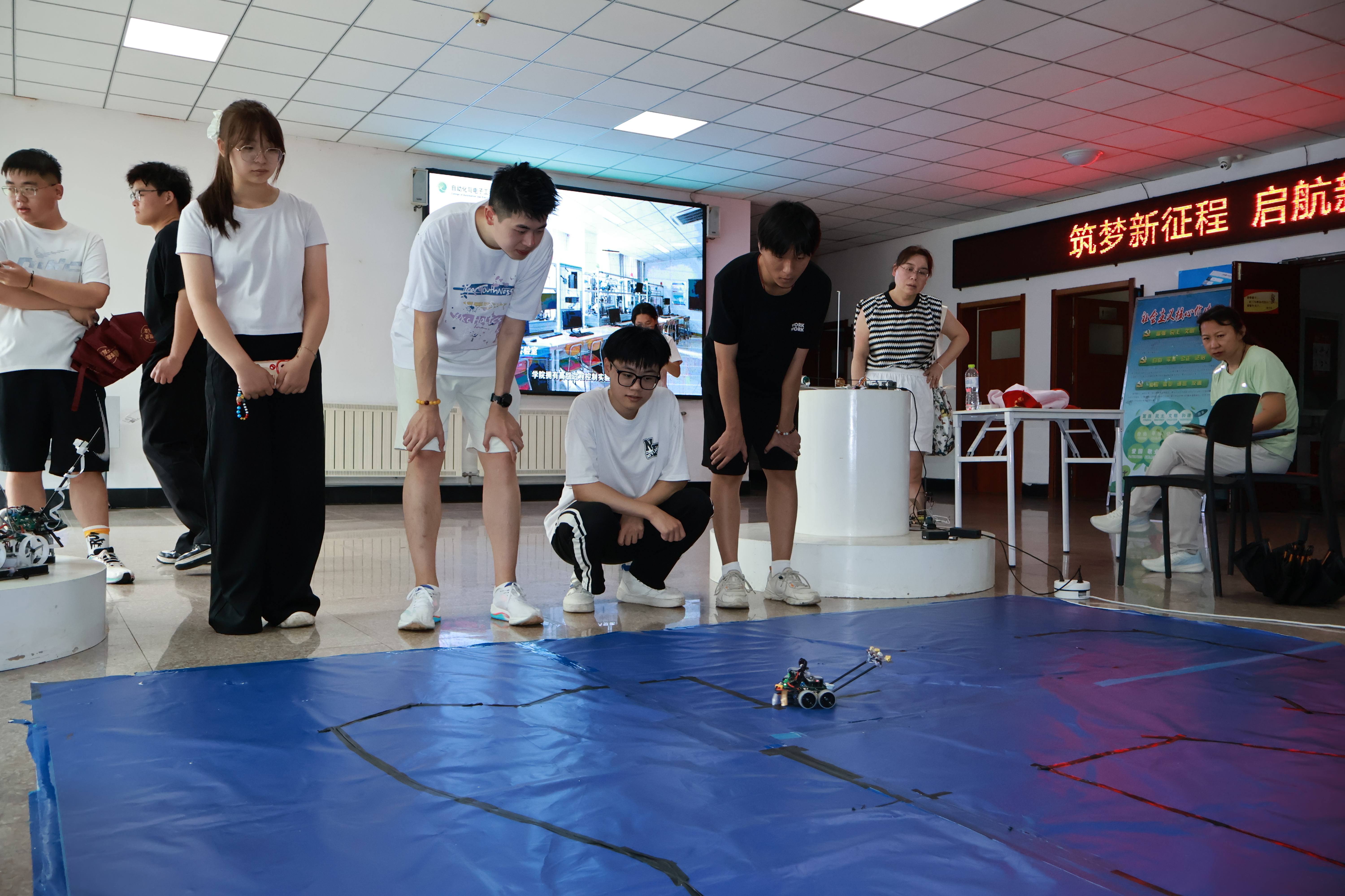 科技启航,智引未来。刚刚过去的九三阅兵仪式,新一代武器装备集中亮相,智能化、无人化、信息化发展趋势明显,人工智能重塑国防力量。学院在迎新现场设置“智能车展示区”、学科竞赛光荣榜等元素,展示学院脑机接口团队2025世界机器人大赛一等奖、中国智能制造挑战赛全国一等奖等近期成果,高年级学长学姐现场进行生动演示和深入浅出的讲解,并与新生互动答疑。炫酷的智能车在赛道上灵活穿梭,完美展现了自动化技术的应用魅力。培养新生“胸怀祖国、自立自强、协同创新、追求卓越”自动化人精神。