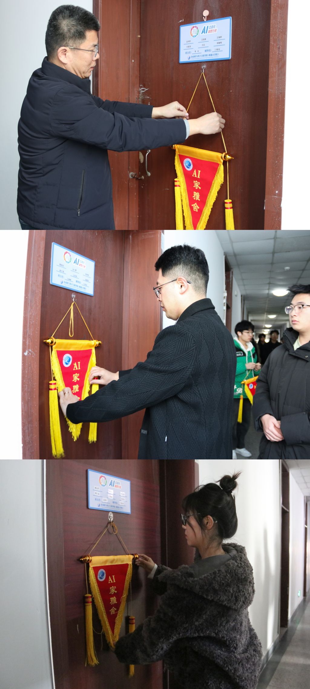 在南苑“一站式”学生社区和北七宿舍楼“AI家驿站”特色学生社区举行“AI家雅舍”优秀宿舍锦旗授予与悬挂活动。学院党委副书记兼副院长刘名森、团委副书记兼学工办副主任张郁浩、全体辅导员以及优秀宿舍学生代表共同参加仪式。