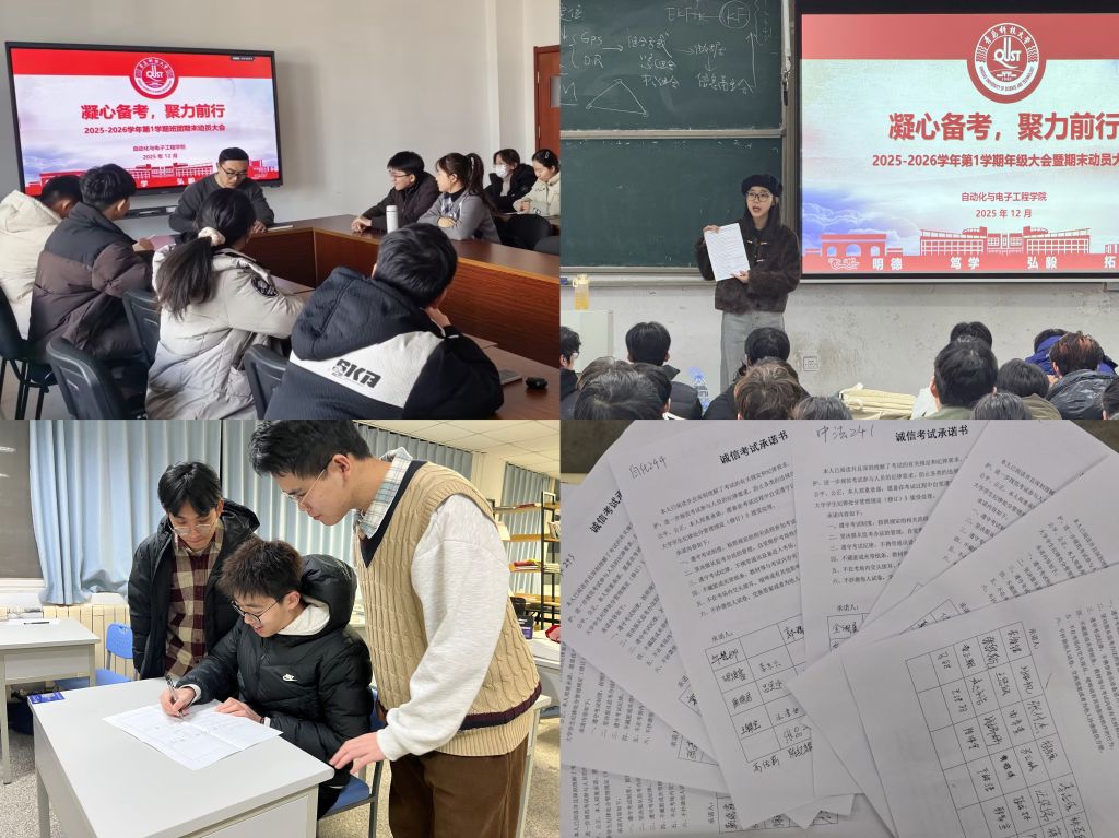 学工队伍深化教育引导,实现考风考纪教育全覆盖。召开年级考风考纪教育大会5场,依托学校警示教育片、案例选编开展警示教育,系统解读《青岛科技大学学生纪律处分管理规定(修订)》(青科大字〔2022〕81号)相关条款,剖析作弊危害;各班级依托班团例会开展“诚信应考”主题教育,强化纪律观念。针对学业困难、心理压力较大等特殊群体,建立精准帮扶机制,开展“点对点”辅导与心理疏导。结合学校诚信主题教育实施方案,发起“诚信考试,从我做起”倡议,组织全体学生签订《诚信考试承诺书》,营造崇信抑弊浓厚氛围。