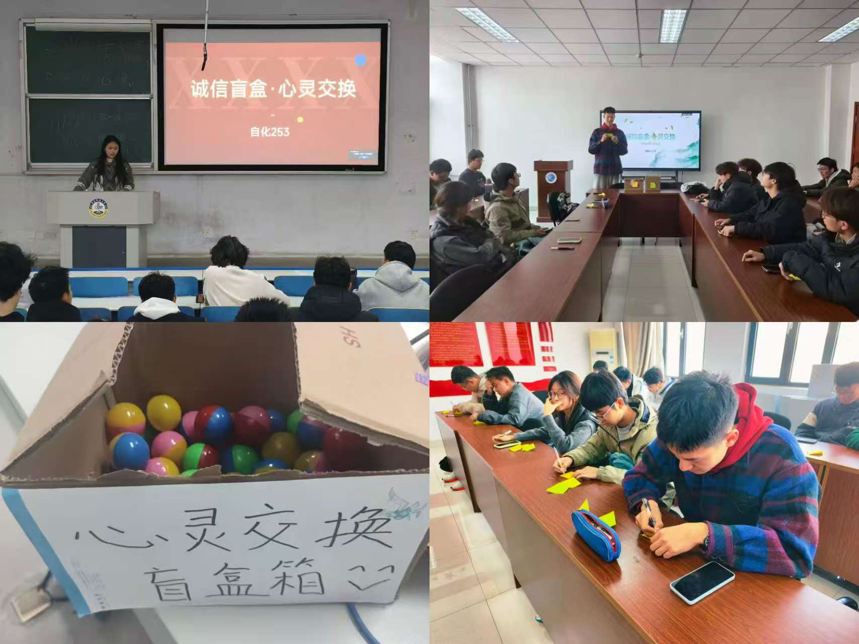 “智行筑心”心理工作站于3月中旬统筹部署,组织各班级全覆盖开展“诚信盲盒·心灵交换”3·25学风诚信主题活动,以朋辈共情的创新形式,为学子搭建心灵共鸣的交流平台,筑牢学风建设的心理根基。