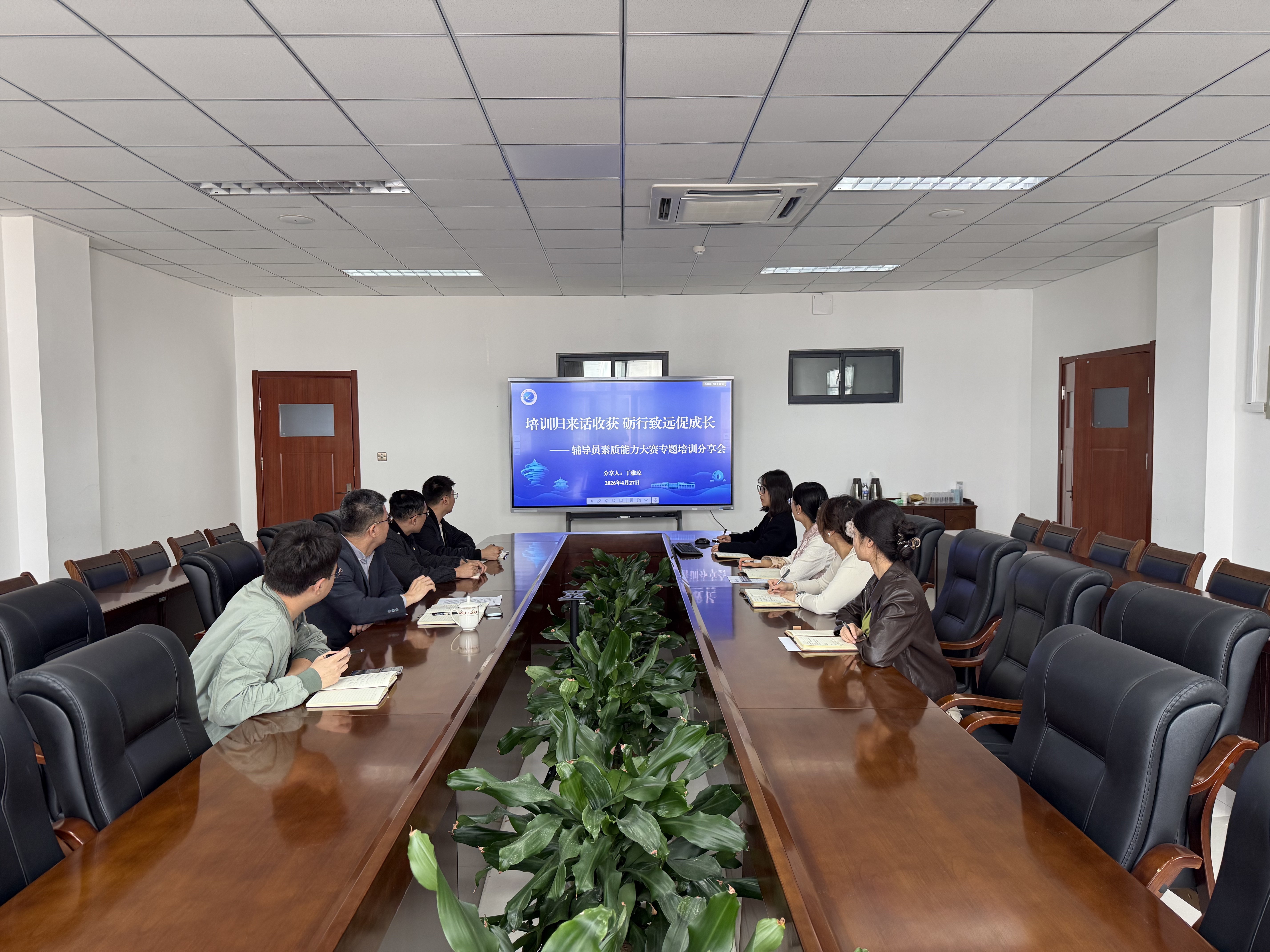 举办“培训归来话收获 砺行致远促成长”第四期分享会暨辅导员素质能力大赛专题分享会,切实将赛事培训所学转化为提升日常思政工作效能的实招硬招。学院辅导员丁雅琼作培训分享,学工办全体专职辅导员参会。