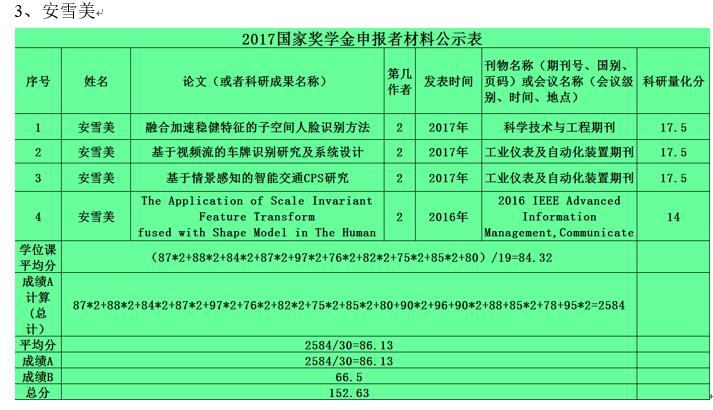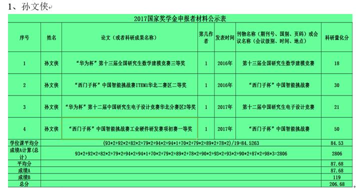 2017年研究生国家奖学金推荐名单公示