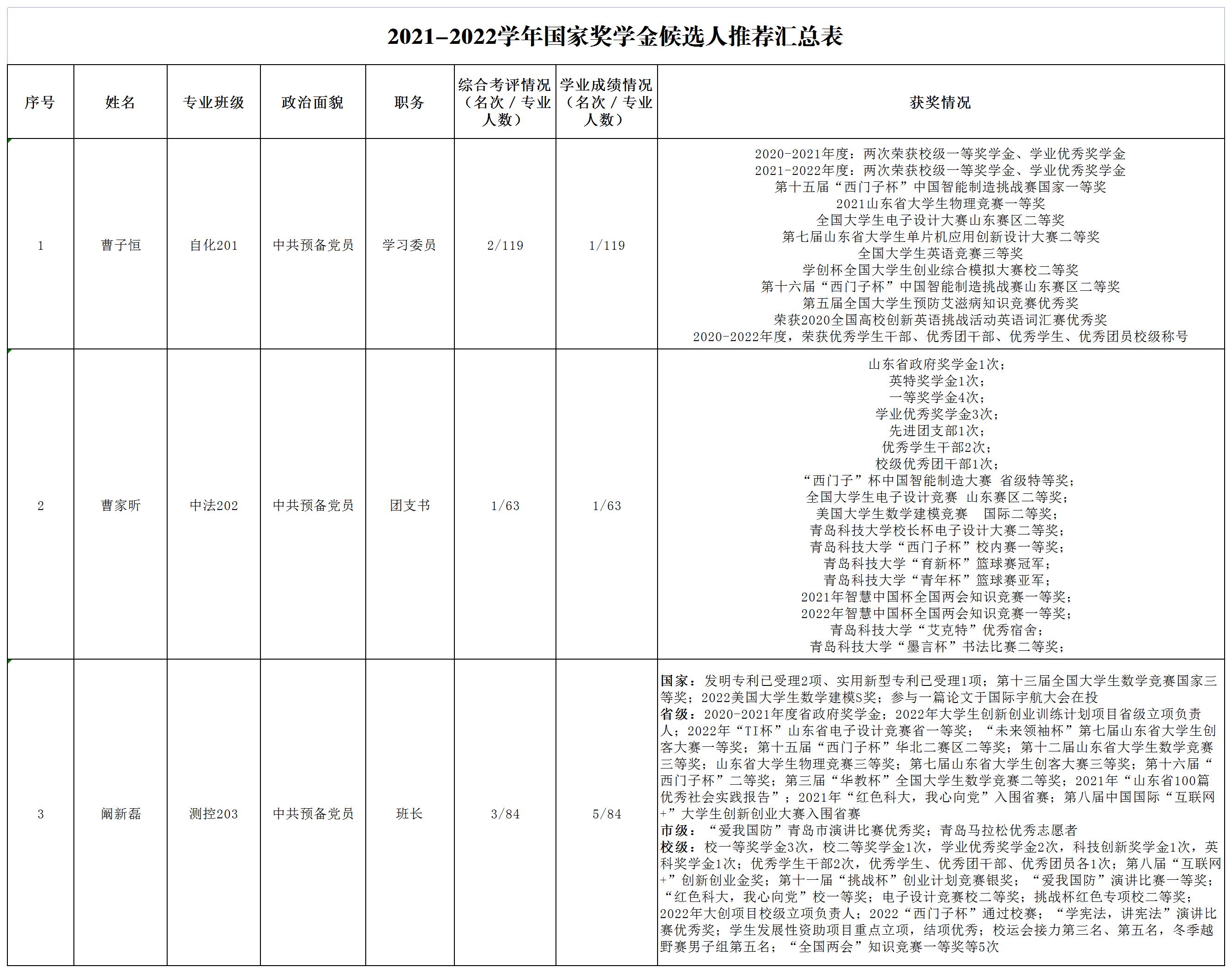 根据青岛科技大学《关于评审2021-2022学年本专科生国家奖学金的通知》,经由学生本人提出申请并提交相关证明材料后,学院评审委员会坚持公开、公平、公正、择优的原则,按照申请人的综合情况和学校分配的名额进行了评审。