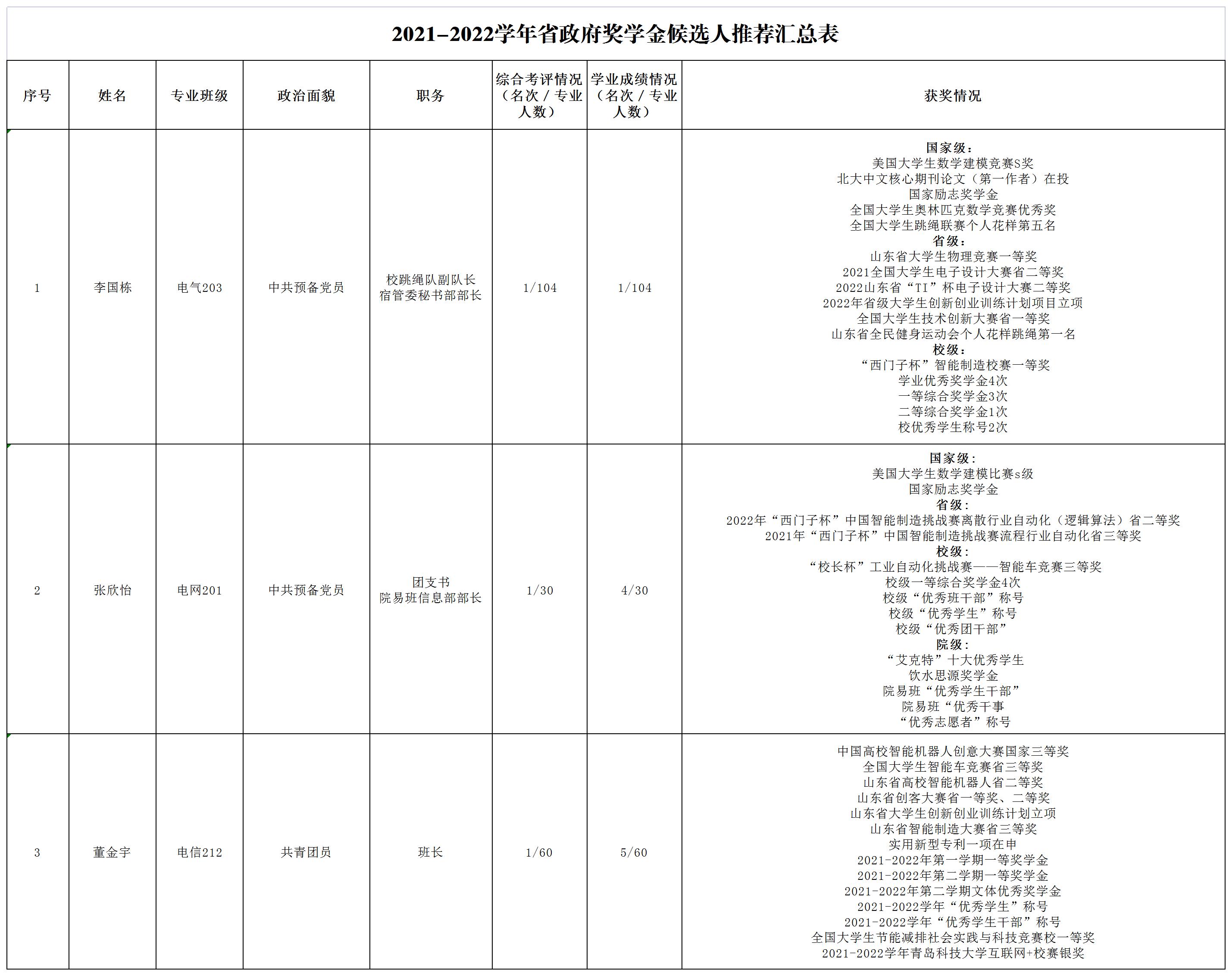 根据青岛科技大学《关于评审2021-2022学年本专科生省政府奖学金和励志奖学金的通知》,经由学生本人提出申请并提交相关证明材料后,学院评审委员会坚持公开、公平、公正、择优的原则,按照申请人的综合情况和学校下达的名额进行了评审。