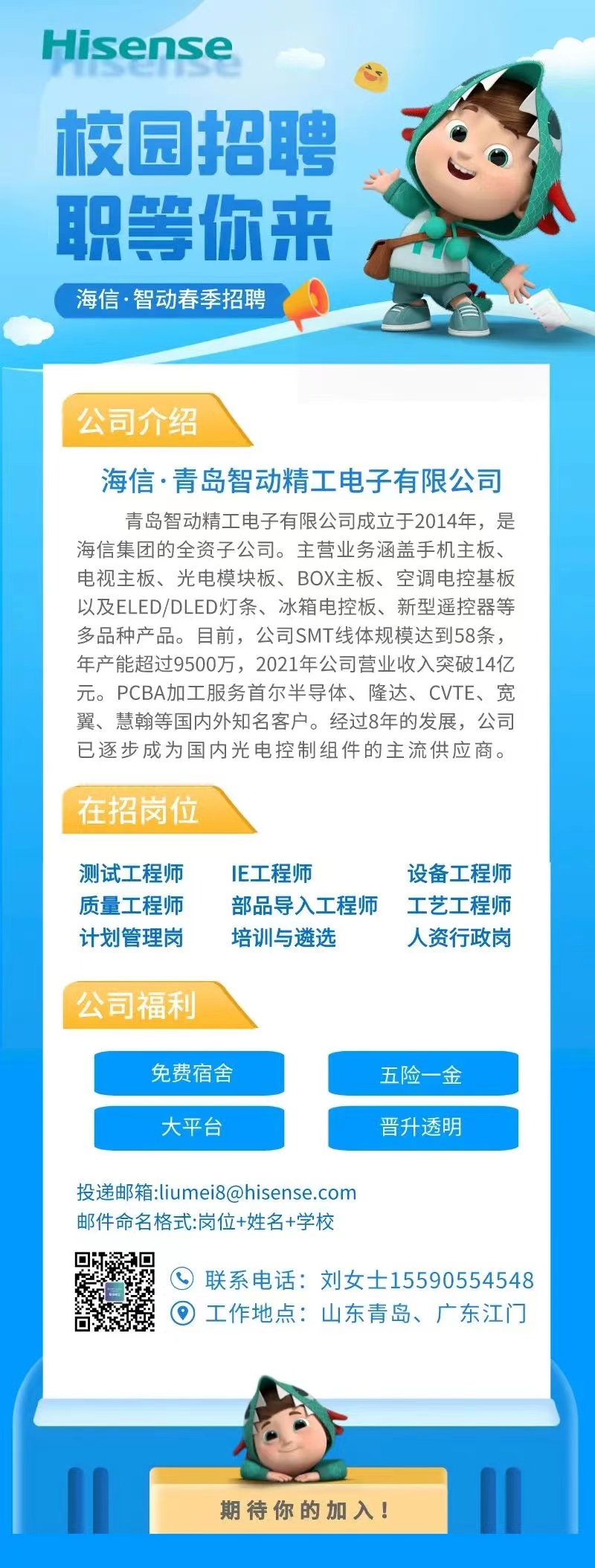 校园招聘(三十)海信青岛智动精工电子有限公司校园招聘