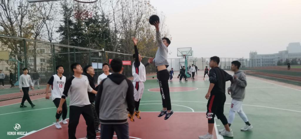 分团委于彬老师、孙晓旭老师各带领A、B两支队伍于南苑操场正式展开对决。赛场上老师和同学们上下一心,通力合作,绝妙的抄捷、妙传、盖帽、跳投、胯下运球以及远距离投篮等,默契配合、稳扎稳打,赢得了场下观众的阵阵呼声。裁判员胡庆铎和常绪龙,记录员黄晓琪,记分员孙文琪公平公正主持本次比赛。经过一下午的激烈角逐,最终孙晓旭老师带领的A队以33:17的成绩胜出。