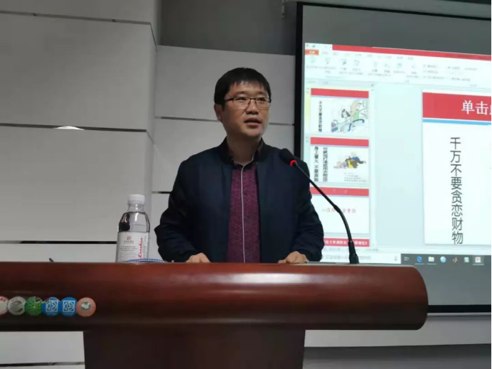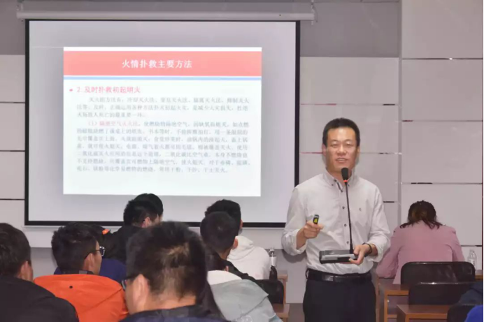 之后由马寒深入的为大一新生解释火灾对我们的危害,并指出本次讲座为增强大一新生消防意识的主旨,希望大一新生能够合理利用电器并防患于未“燃”。