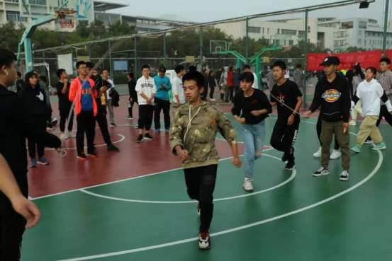 本次比赛学院2019级各班级全部参加,共计19支队伍,每场比赛时长为三分钟,以三分钟内所跳的总个数为最终成绩。