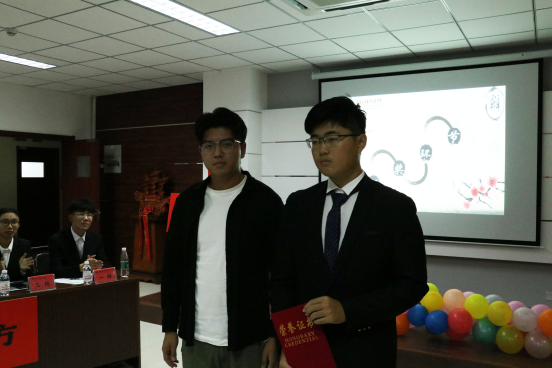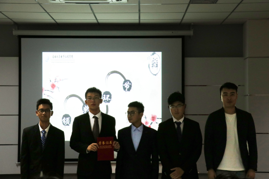郭蒙蒙老师为电信192班团队颁冠军奖,于彬老师为中法192班团队颁亚军奖,由吴擎老师为乔康剑同学颁最佳辩手奖。